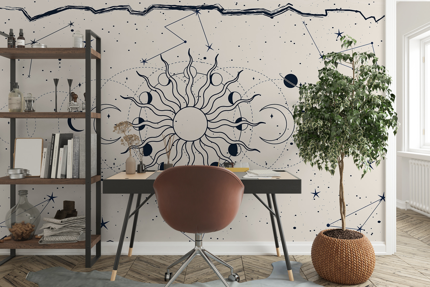 Trasformate il vostro spazio con l’incantevole “Murales Disegno del Sole e della Luna”. Questo disegno ipnotico riunisce il duo celeste in una danza giocosa. Immaginate di entrare in una stanza dove il sole emana calore e la luna proietta un bagliore rasserenante. Perfetto per un’accogliente camera da letto o per una vivace zona giorno, stimola le conversazioni e ispira i sogni ad occhi aperti.