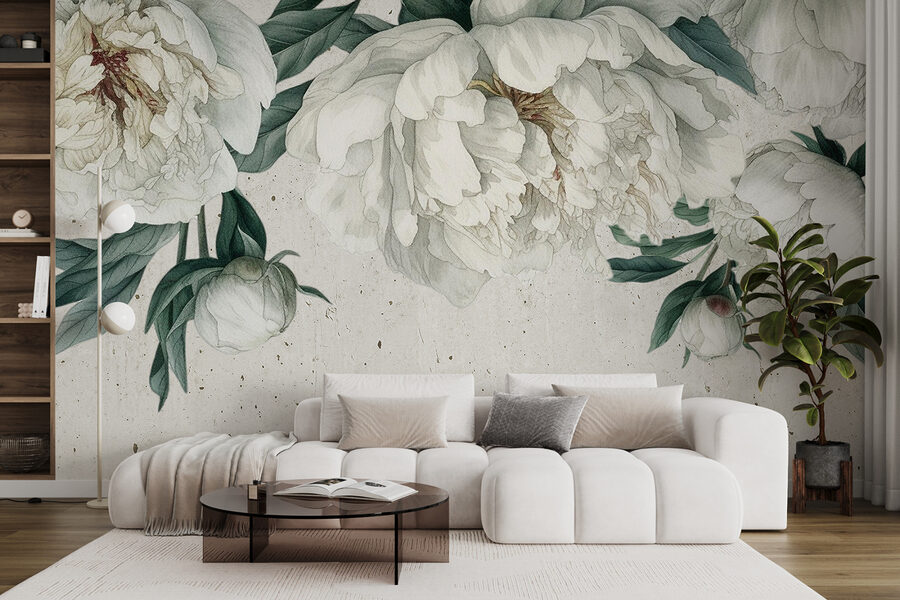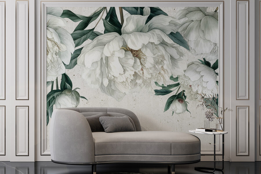 Trasformate qualsiasi ambiente con questo bellissimo murale con peonie bianche incastonate tra foglie verdi e rigogliose. Immaginate di entrare nel vostro spazio e di sentirvi come se foste appena entrati in un giardino sereno: un’atmosfera incantevole! Questo murale non è solo un elemento d’arredo, ma racconta una storia di eleganza e tranquillità. I morbidi petali quasi sussurrano relax, rendendolo perfetto per un accogliente angolo lettura o un invitante salotto.