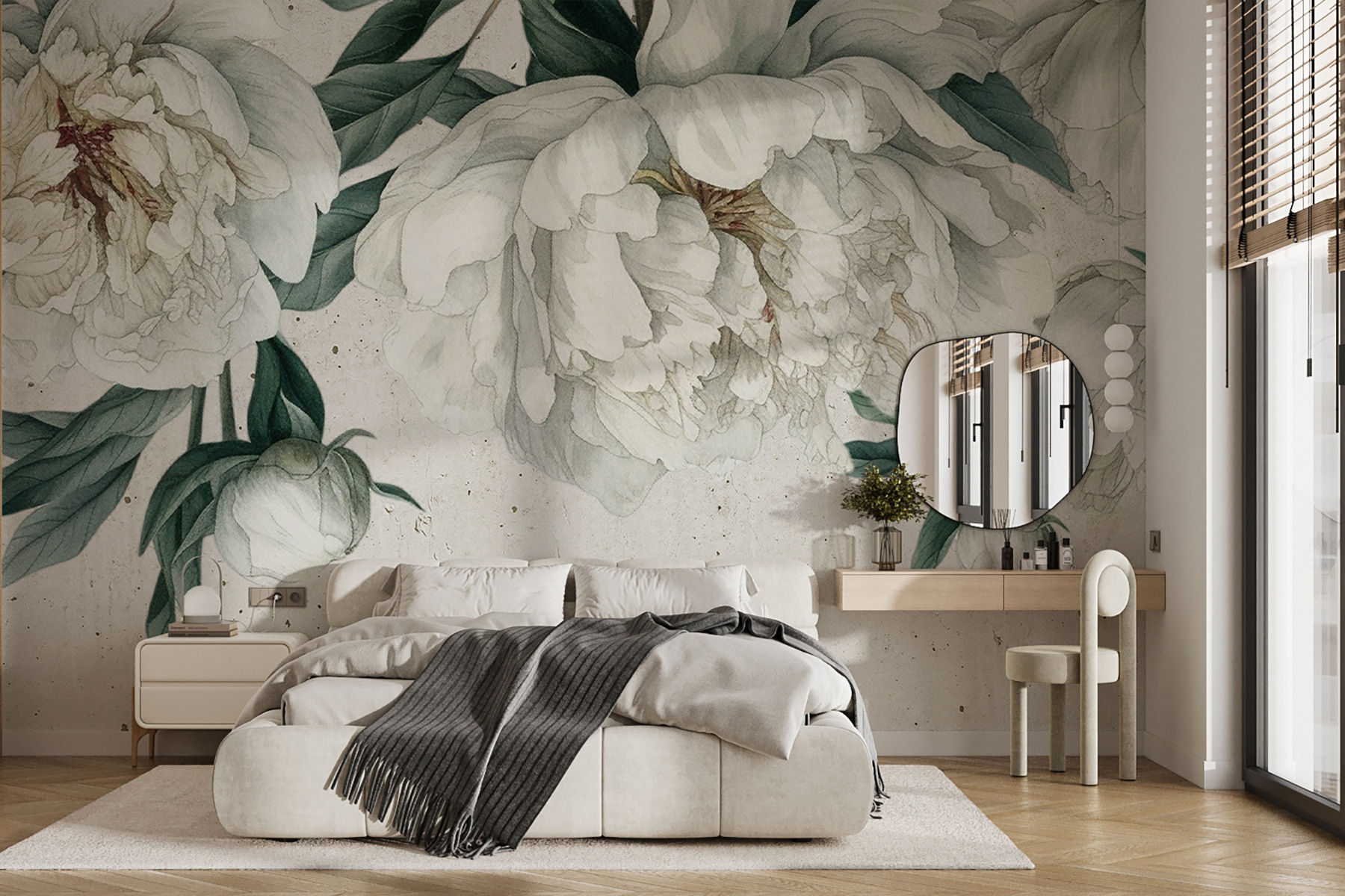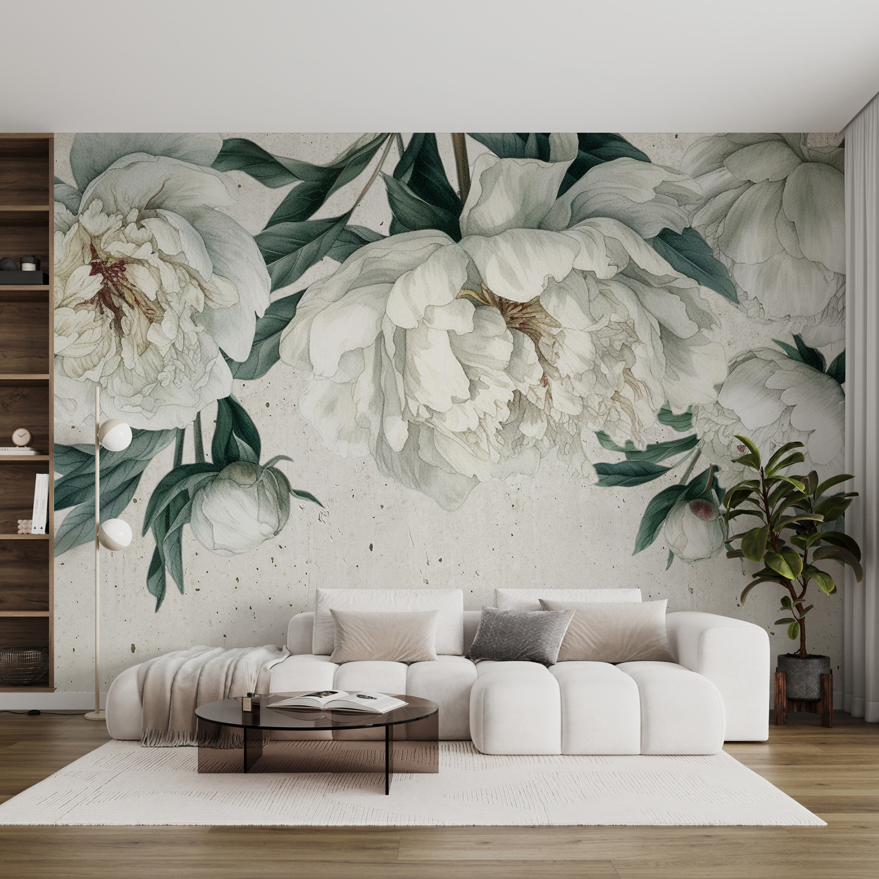 Trasformate qualsiasi ambiente con questo bellissimo murale con peonie bianche incastonate tra foglie verdi e rigogliose. Immaginate di entrare nel vostro spazio e di sentirvi come se foste appena entrati in un giardino sereno: un’atmosfera incantevole! Questo murale non è solo un elemento d’arredo, ma racconta una storia di eleganza e tranquillità. I morbidi petali quasi sussurrano relax, rendendolo perfetto per un accogliente angolo lettura o un invitante salotto.