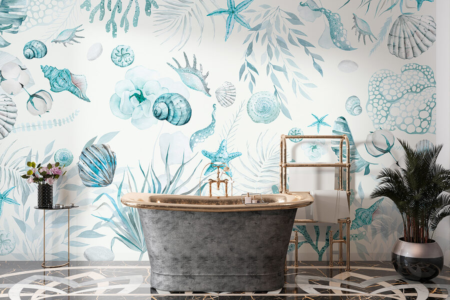 Trasformate qualsiasi stanza in una rilassante fuga in riva al mare con questo murale, caratterizzato da conchiglie e da un delicato fogliame in tenui tonalità di blu. Immaginate di entrare nel vostro spazio e di sentirvi come se aveste appena messo piede sulla riva del mare, dove la brezza oceanica è appena un sussurro. Ogni dettaglio delicato invita al relax, rendendolo perfetto per un accogliente angolo lettura o anche per una ventilata camera da letto. È come portare un pezzo di oceano direttamente sulla vostra parete: niente sabbia nelle scarpe, solo pura serenità. Uno sfondo straordinario che potrebbe far sognare avventure sulla spiaggia!