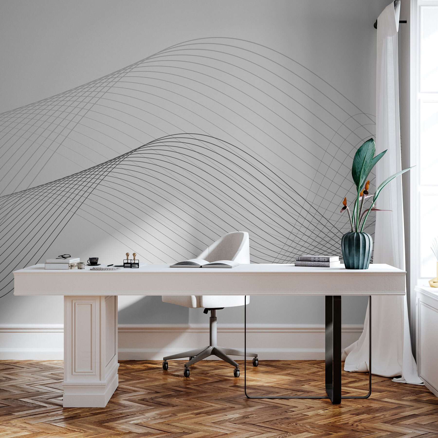 Immaginate di avere un’onda serena di linee bianche e nere che scorrono sulla vostra parete. Questo murale, con il suo design minimalista, aggiunge un tocco chic a qualsiasi stanza. È come una leggera brezza sulla spiaggia, ma per le vostre pareti! Che siate amanti dell’arredamento contemporaneo o che vogliate semplicemente dare una scossa, questo murale si adatta perfettamente. Perfetto per quei momenti in cui si ha bisogno di una pausa visiva e tranquilla. È un capolavoro moderno che non grida, ma sussurra, e tutti amano i sussurri, giusto? Trasforma le pareti ordinarie in arte. Elegante, semplice, sorprendente.