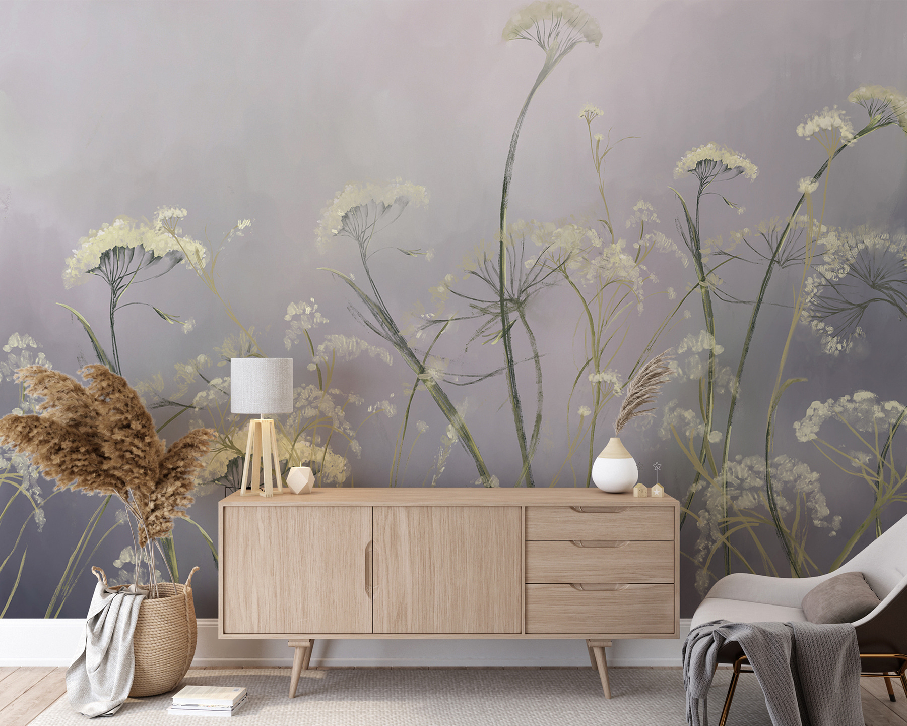 Trasformate il vostro spazio con questo delizioso murale con fiori delicati su un rilassante sfondo grigio. Immaginate di entrare in una stanza e di essere accolti dal dolce ondeggiare di questi fiori, come se danzassero al ritmo di una leggera brezza. È come portare un piccolo pezzo di natura in casa, senza dover innaffiare nulla! Questo murale può illuminare qualsiasi spazio, che si tratti di un accogliente soggiorno o di un angolo sereno della camera da letto, aggiungendo un tocco di eleganza fresco e riposante. Perfetto per quei giorni in cui non si riesce a raggiungere l’aria aperta. Abbracciate la bellezza della natura e lasciate che ispiri i vostri momenti quotidiani.