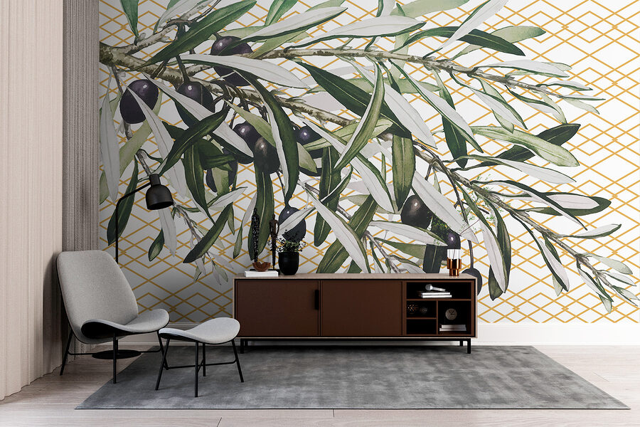Questo murale è delizioso! Immaginate di riempire il vostro spazio con le vibrazioni serene di un uliveto proprio a casa vostra. Il murale, “Rami d’ulivo su motivo geometrico”, fonde senza sforzo la natura con il design moderno. Lo sfondo geometrico è sottile ma d’effetto, per dare un tocco di contemporaneità. È come avere il meglio dei due mondi: un tocco di natura e l’eleganza dell’arte moderna. Immaginate di ospitare una cena o di rilassarvi sul divano con questo pezzo rilassante: vi sembrerà una mini fuga nel Mediterraneo! Sia che stiate sorseggiando il caffè del mattino o che vi stiate rilassando dopo una giornata intensa, questo murale aggiunge un fascino delicato e sofisticato al vostro rifugio. È difficile non innamorarsi delle delicate foglie e degli eleganti ulivi. Perfetto per chi ama l’arredamento ispirato alla natura con un pizzico di design chic.