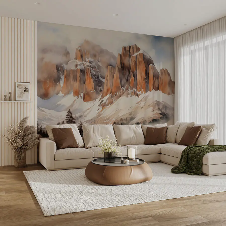 Trasformate qualsiasi stanza con questo splendido murale che raffigura una catena montuosa avvolta da soffici nuvole e punteggiata da alberi resistenti. Immaginate di svegliarvi e di essere accolti ogni mattina da queste cime maestose: è come una mini-vacanza a casa vostra. I colori della terra conferiscono un’atmosfera accogliente che rende gli spazi caldi e invitanti. Che si tratti di un soggiorno o di una tranquilla camera da letto, questo murale sussurra storie di avventura e serenità. Inoltre, è un ottimo spunto di conversazione per gli amici. Chi non vorrebbe parlare dell’esplorazione di questi grandiosi panorami?