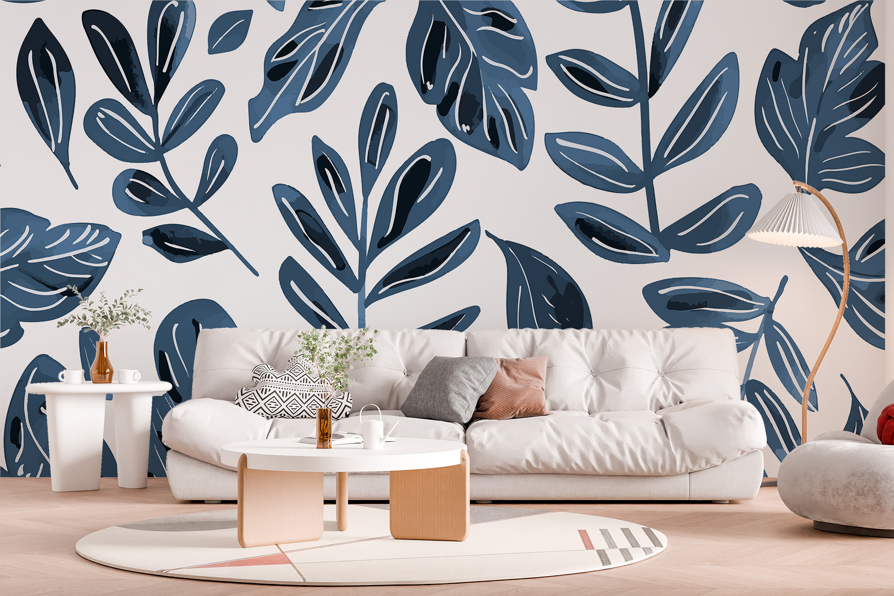 Carta da parati Motivo di foglie blu (SKU: w00969)