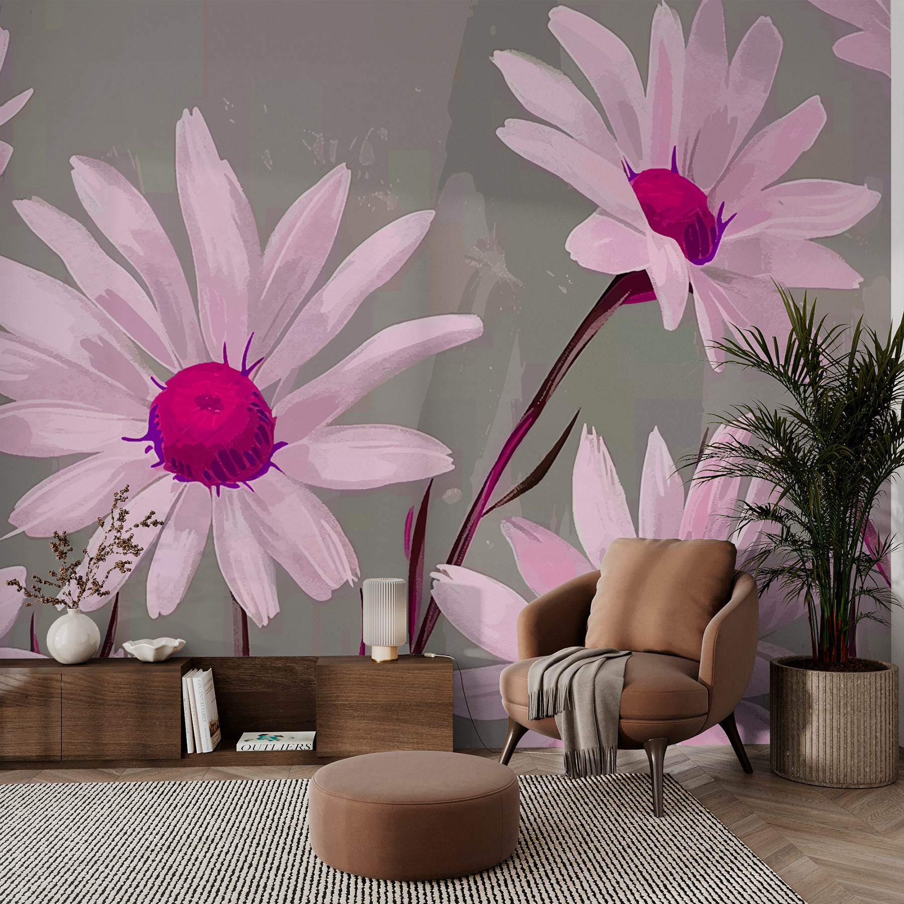 Trasformate qualsiasi stanza con questo murale da sogno che presenta un delizioso gruppo di fiori bianchi, ciascuno con un bizzarro centro viola. È come una boccata d’aria fresca che porta la natura in casa vostra. Immaginate di entrare in uno spazio in cui le vibranti fioriture danzano sulle pareti, risollevando immediatamente l’umore. Perfetto per un angolo accogliente, un salotto allegro o anche per quella parete che ha bisogno di un po’ di brio. È difficile non sorridere di fronte a questi affascinanti petali. Date alle vostre pareti l’amore che meritano: chi avrebbe mai detto che una decorazione floreale potesse essere così divertente?