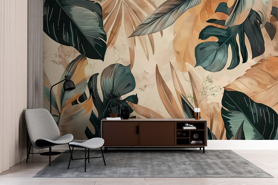 Le texture riproducono il fascino consumato del legno e delle pareti invecchiate, aggiungendo un’atmosfera rustica ma vivace. Ideale per creare un accogliente angolo di lettura o un luogo di ritrovo dove si può quasi sentire il fruscio delle foglie e il lontano richiamo degli uccelli tropicali. È come una mini-vacanza per le pareti, senza bisogno di protezione solare.