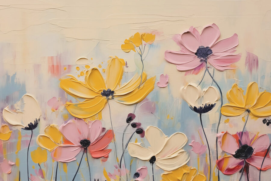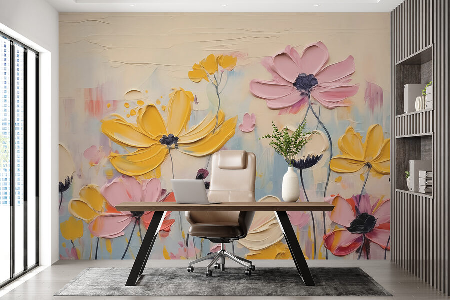 Immaginate di entrare in una stanza piena di colori e di gioia: questo murale è proprio questo! Fiori vivaci danzano su uno sfondo morbido e cremoso, facendo sentire la primavera tutto l’anno. Immaginate un angolo accogliente dove poter sorseggiare il vostro caffè e crogiolarvi in queste allegre vibrazioni. Che si tratti di un salotto o di una giocosa cameretta, questo murale trasforma lo spazio, quasi come invitare un giardino all’interno. Non si tratta solo di arredamento, ma di una dose quotidiana di felicità. Chi non vorrebbe svegliarsi ogni mattina con questa festa di fiori?
