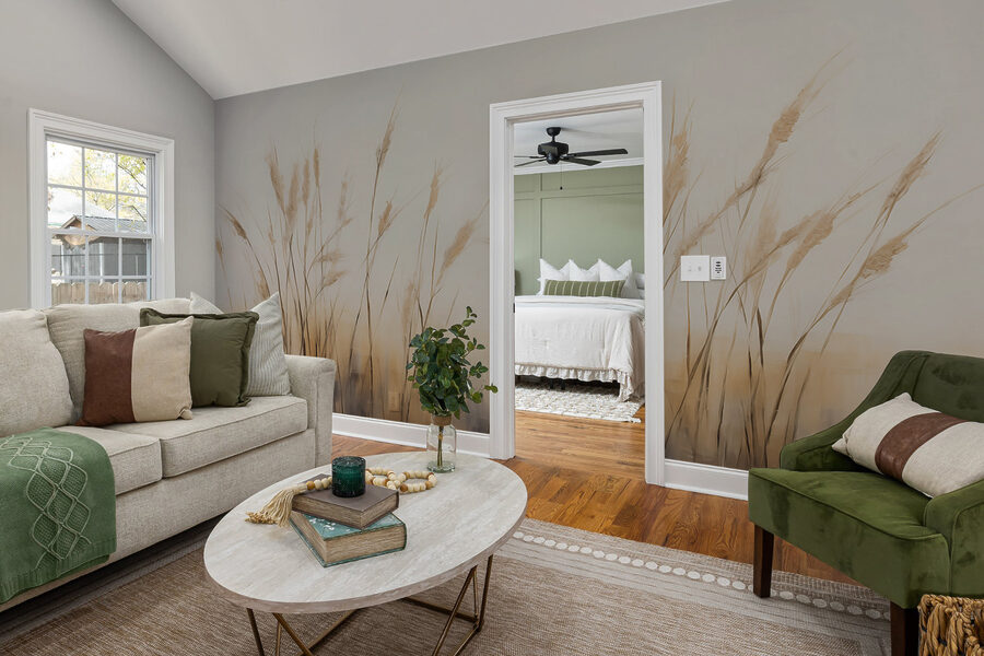 È perfetto anche per far sembrare gli spazi più grandi, perché i toni morbidi della terra e le linee delicate non si limitano a stare lì, ma invitano a respirare più profondamente e a rilassarsi di più. È incredibile come questo murale possa trasformare il vostro spazio in un rifugio sereno. Perfetto per il soggiorno, la camera da letto o anche per un tranquillo angolo di lettura. Immaginate di illuminare un angolo accogliente con vibrazioni calde e naturali. Fa sentire tutto più leggero, come se le preoccupazioni fossero semplicemente spazzate via.