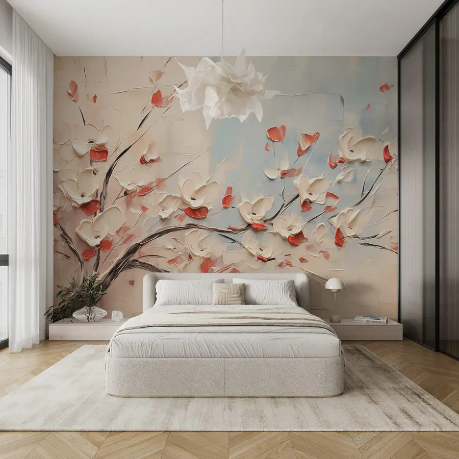 Trasformate il vostro spazio con questo splendido murale che raffigura un albero graziosamente arcuato e ornato da delicati fiori bianchi. Immaginate di entrare in una stanza e di provare un’immediata sensazione di calma e gioia, proprio come una boccata di aria fresca di primavera. I colori tenui si fondono senza sforzo e si adattano facilmente a qualsiasi stile di arredamento. È perfetto per quella parete noiosa che ha bisogno di un po’ di brio o per un angolo accogliente che desidera un tocco di natura. Gli amici si chiederanno dove avete trovato un tale gioiello. Immaginatelo come sfondo per le chiacchierate al caffè o per i momenti di tranquillità: i fiori hanno qualcosa che rende tutto più luminoso. Lasciate che questo murale inviti il calore e l’allegria nella vostra casa!