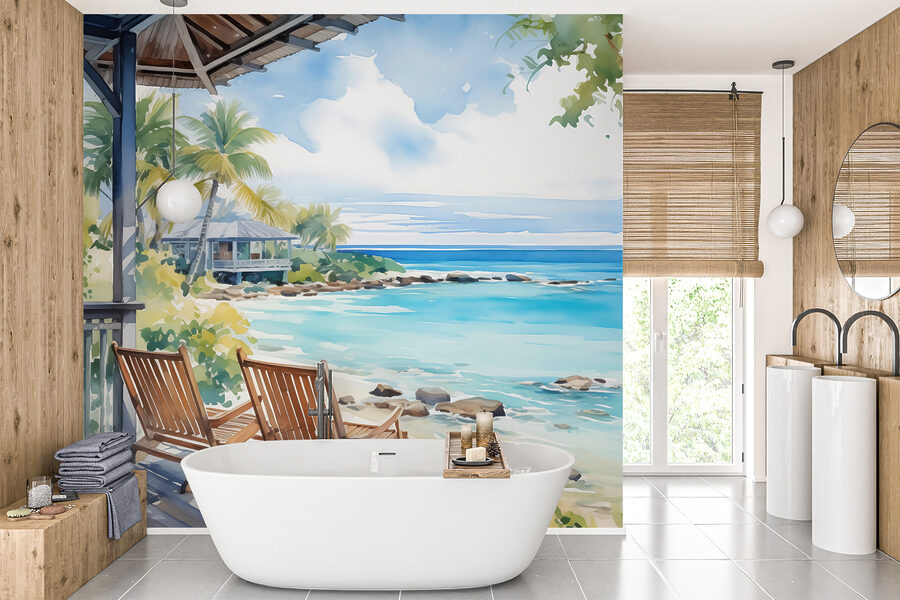 Immaginate di entrare in una stanza e di essere trasportati su un ponte assolato, con i piedi che sentono il calore del legno illuminato dal sole mentre le onde cantano la loro eterna ninna nanna. Questo murale è più di una semplice immagine: è un invito a fermarsi e a respirare. Sentire la brezza attraverso le fronde acquerellate, ascoltare il dolce sciabordio della marea turchese nelle vicinanze. Una fuga quotidiana, proprio a casa nostra. Perfetto per i sognatori o per chiunque desideri un rifugio al mare a portata di mano. Le spiagge sono belle, ma questa è pura serenità su richiesta.