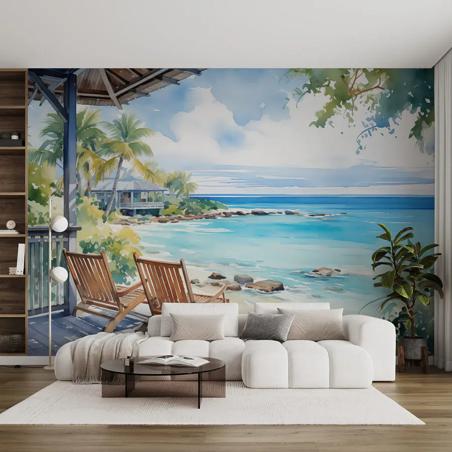 Immaginate di entrare in una stanza e di essere trasportati su un ponte assolato, con i piedi che sentono il calore del legno illuminato dal sole mentre le onde cantano la loro eterna ninna nanna. Questo murale è più di una semplice immagine: è un invito a fermarsi e a respirare. Sentire la brezza attraverso le fronde acquerellate, ascoltare il dolce sciabordio della marea turchese nelle vicinanze. Una fuga quotidiana, proprio a casa nostra. Perfetto per i sognatori o per chiunque desideri un rifugio al mare a portata di mano. Le spiagge sono belle, ma questa è pura serenità su richiesta.