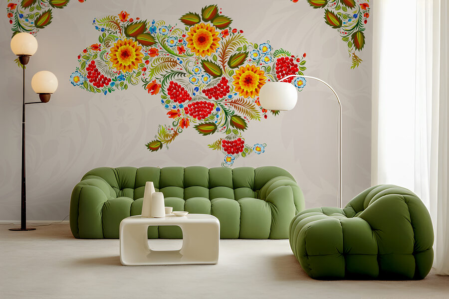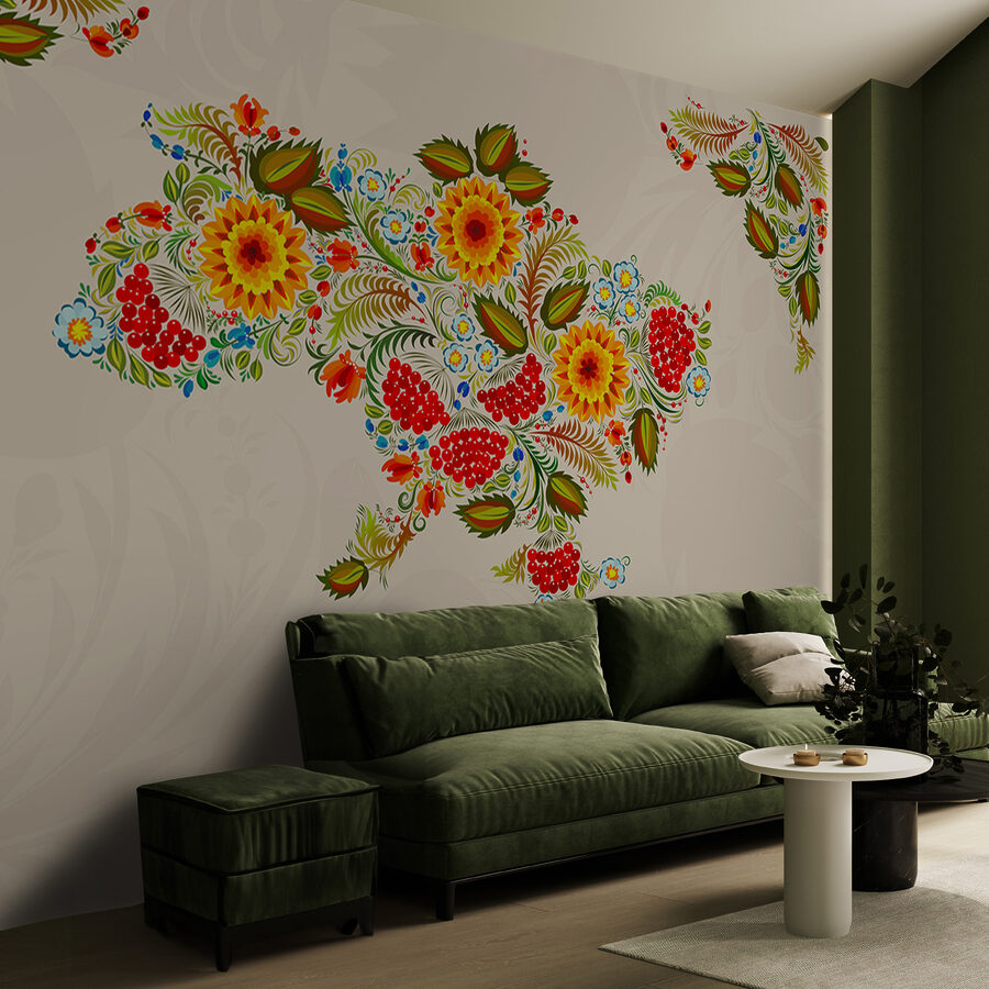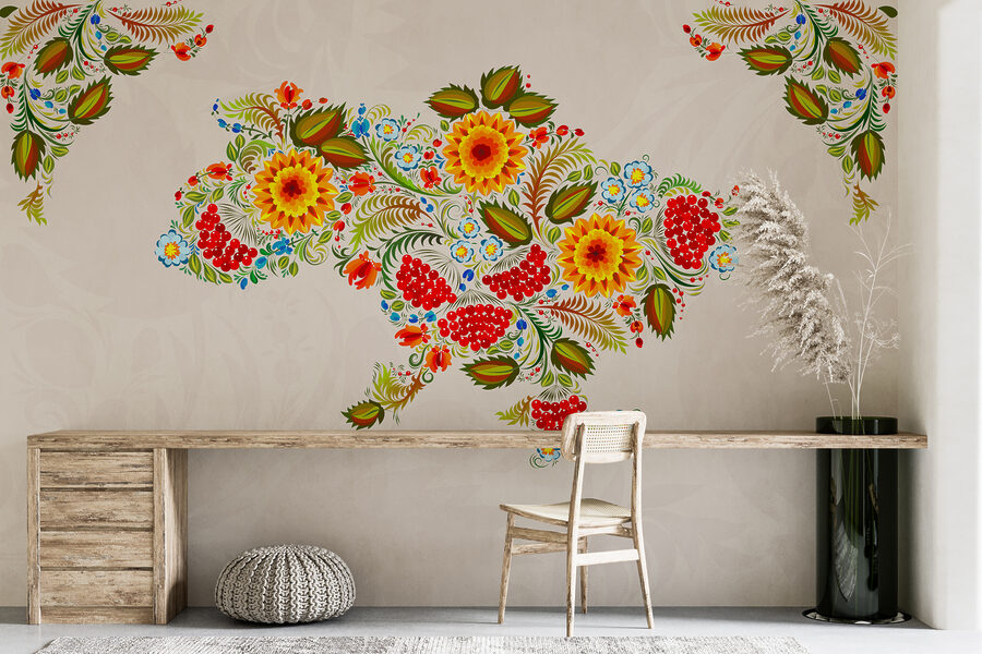 Ehilà, appassionati di arredamento! Vi presentiamo questo splendido murales: è una mappa dell’Ucraina, ma abbandonate le linee noiose per dei fiori sbocciati e vivaci. Immaginate la vostra stanza con un’esplosione di colori, come se un giardino fosse appena entrato. Quei ricchi gialli e rossi, mescolati a verdi vibranti: pura gioia! È come avere un’opera d’arte che sussurra storie di tradizione e cultura. Insomma, chi non vorrebbe iniziare la giornata con la sensazione di entrare in una celebrazione? Perfetto per chi desidera un po’ più di bellezza e carattere nel proprio spazio.