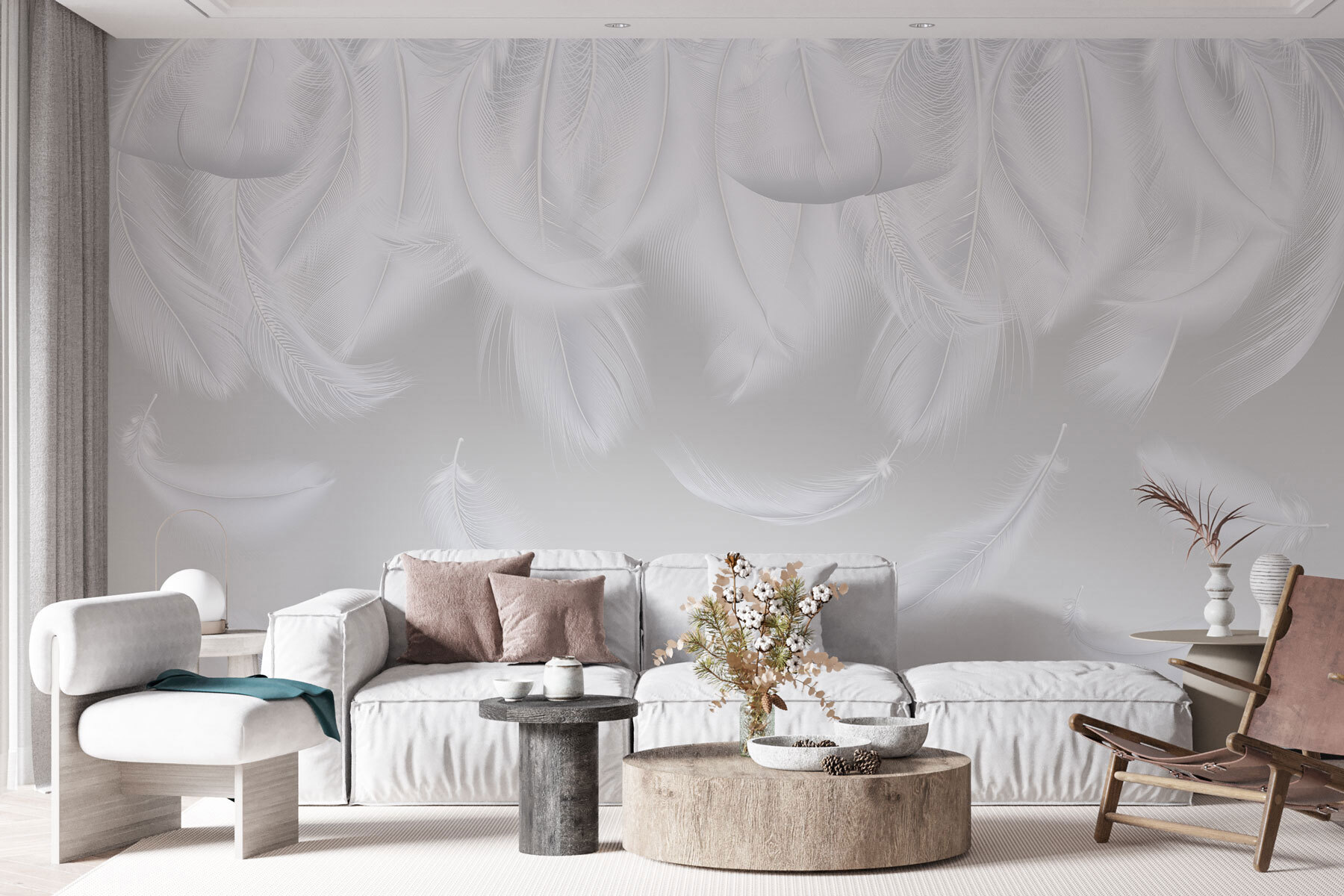 Trasformate qualsiasi stanza in un santuario sereno con questo splendido murale di piume bianche che cadono delicatamente. È come entrare in una nuvola sognante, dove ogni piuma sembra sussurrare segreti di calma e tranquillità. Immaginate di accoccolarvi con un libro, circondati da questi dettagli delicati, e di sentirvi immediatamente rilassati. I disegni morbidi aggiungono un tocco di eleganza senza essere troppo appariscenti. E se state sognando ad occhi aperti una fuga pacifica, questo murale vi farà sentire a vostro agio. Perfetto per una camera da letto o un angolo lettura, è pura poesia visiva: chi non lo vorrebbe?