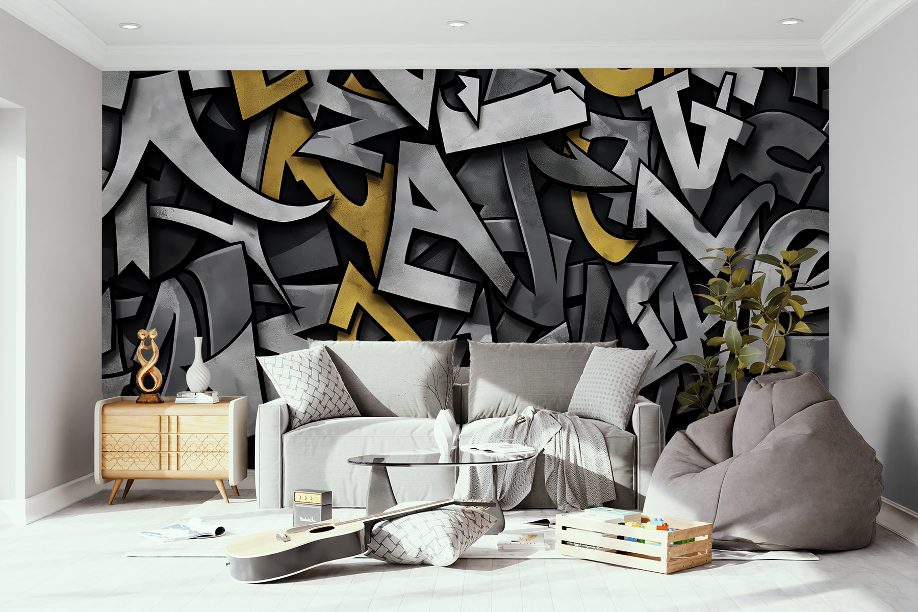 Trasformate qualsiasi spazio con questo sorprendente murale caratterizzato da lettere astratte e texture fresche. È come un pezzo di conversazione visiva, che stimola la curiosità e l’eccitazione. Immaginate di entrare in una stanza dove le lettere vibranti sembrano danzare e suonare sulle pareti, portando energia a qualsiasi incontro. Perfetto per il rifugio di un adolescente o per un accogliente spazio abitativo, questo murale crea uno sfondo vivace che sembra fresco e divertente. Che si tratti di serate al cinema o di letture tranquille, questo disegno offre un tocco unico, facendo sentire ogni momento un po’ più speciale. Perché accontentarsi di pareti semplici quando possono raccontare una storia?