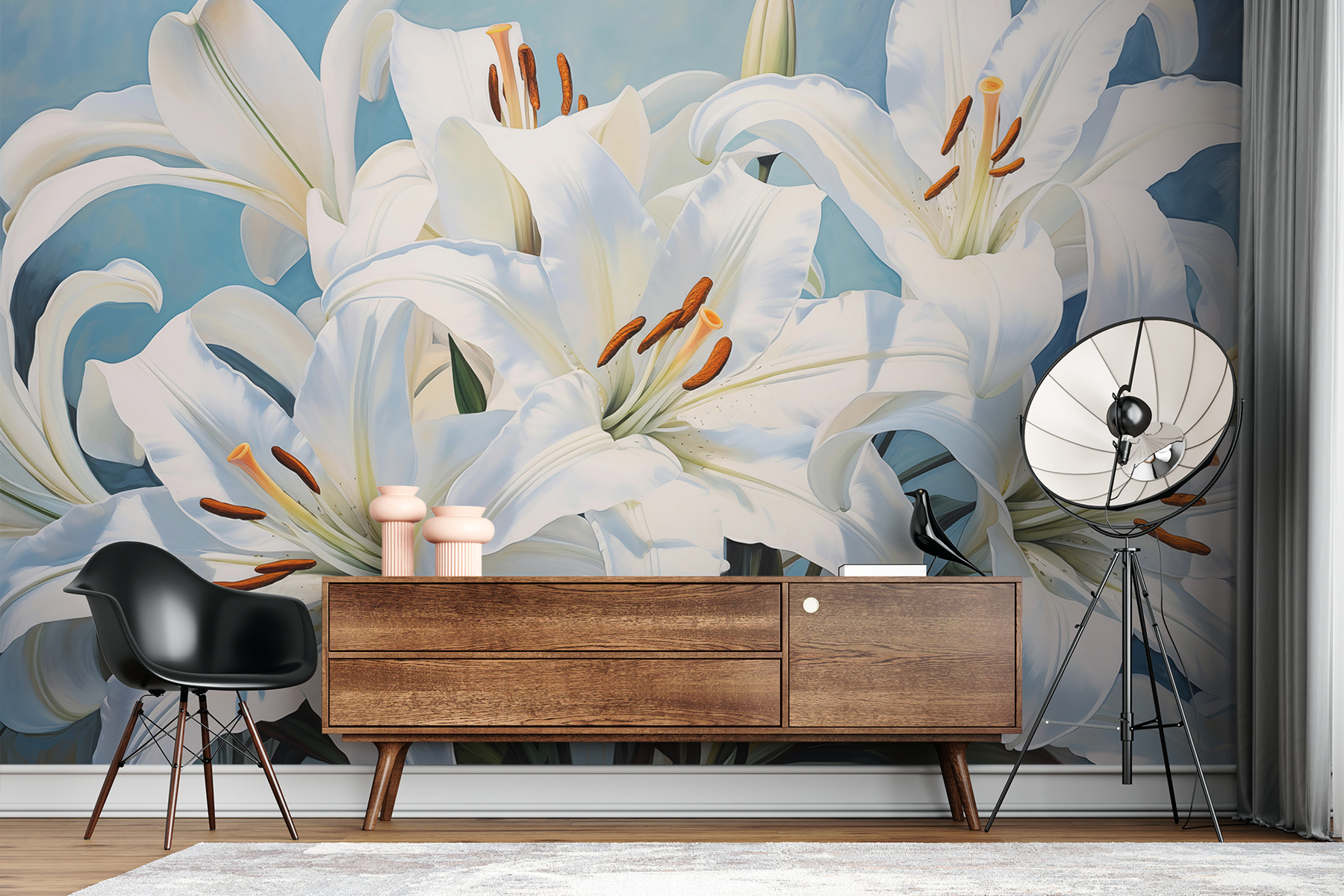 Trasformate il vostro spazio con questo splendido murale, caratterizzato da eleganti gigli bianchi in piena fioritura. È come avere un giardino sulla parete, portando un tocco di natura all’interno. Immaginate di svegliarvi ogni mattina con queste belle fioriture, come se vi sussurrassero “Buona giornata!”. È perfetto per rallegrare un angolo accogliente o per dare risalto a una stanza più grande. I colori delicati creano un’atmosfera rilassante, invitando a momenti di tranquillità. Gli amici si fermeranno ad ammirarlo, magari chiedendo dove avete trovato un pezzo così unico. È un modo semplice per aggiungere bellezza senza bisogno di avere il pollice verde!