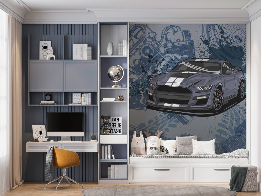 Date una sferzata di energia a qualsiasi ambiente con questo vivace murale che raffigura un’auto elegante, una chiave inglese e ruote in gioco. È come vivere una piccola avventura automobilistica direttamente sulla parete. Non credete che un semplice sfondo possa trasformare l’atmosfera? Immaginate di potervi immergere in una caverna da uomo a tema garage o nella cameretta di un bambino che sogna di correre. Questo murale non solo porta personalità, ma accende anche la gioia, come il profumo dell’erba appena tagliata o il primo sorso di caffè in una mattina frizzante. Per gli amanti delle auto e i sognatori ad occhi aperti, questo non è solo un arredamento, ma un portale verso un mondo di velocità e creatività.