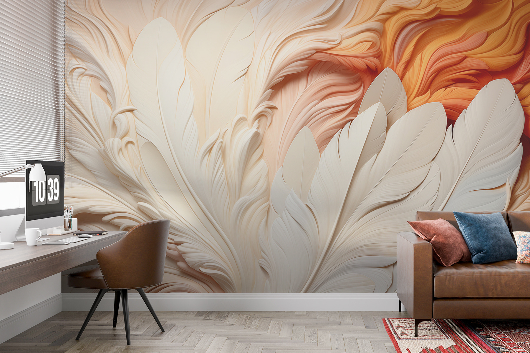 Ecco a voi “Carta da parati w01301”, un pezzo straordinario che è tutto un’elegante vibrazione di piume! Immaginate di entrare in una stanza con queste piume soffici e vorticose che si posano sulla vostra parete. Non si tratta solo di un murale, ma di un’intera atmosfera. I bianchi cremosi che si fondono con i caldi arancioni… è come un accogliente tramonto che avvolge il vostro spazio. Perfetto per aggiungere un tocco di magia 3D a qualsiasi ambiente.