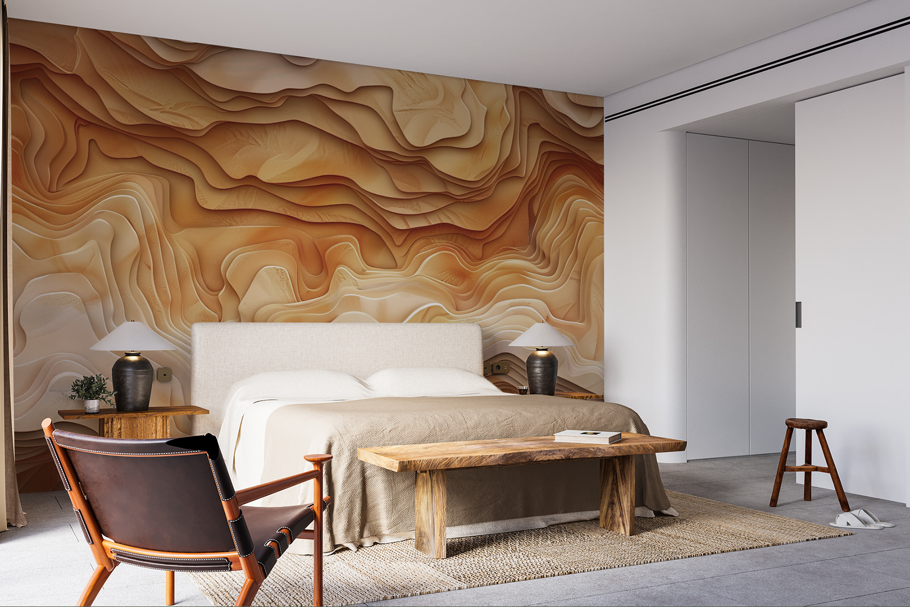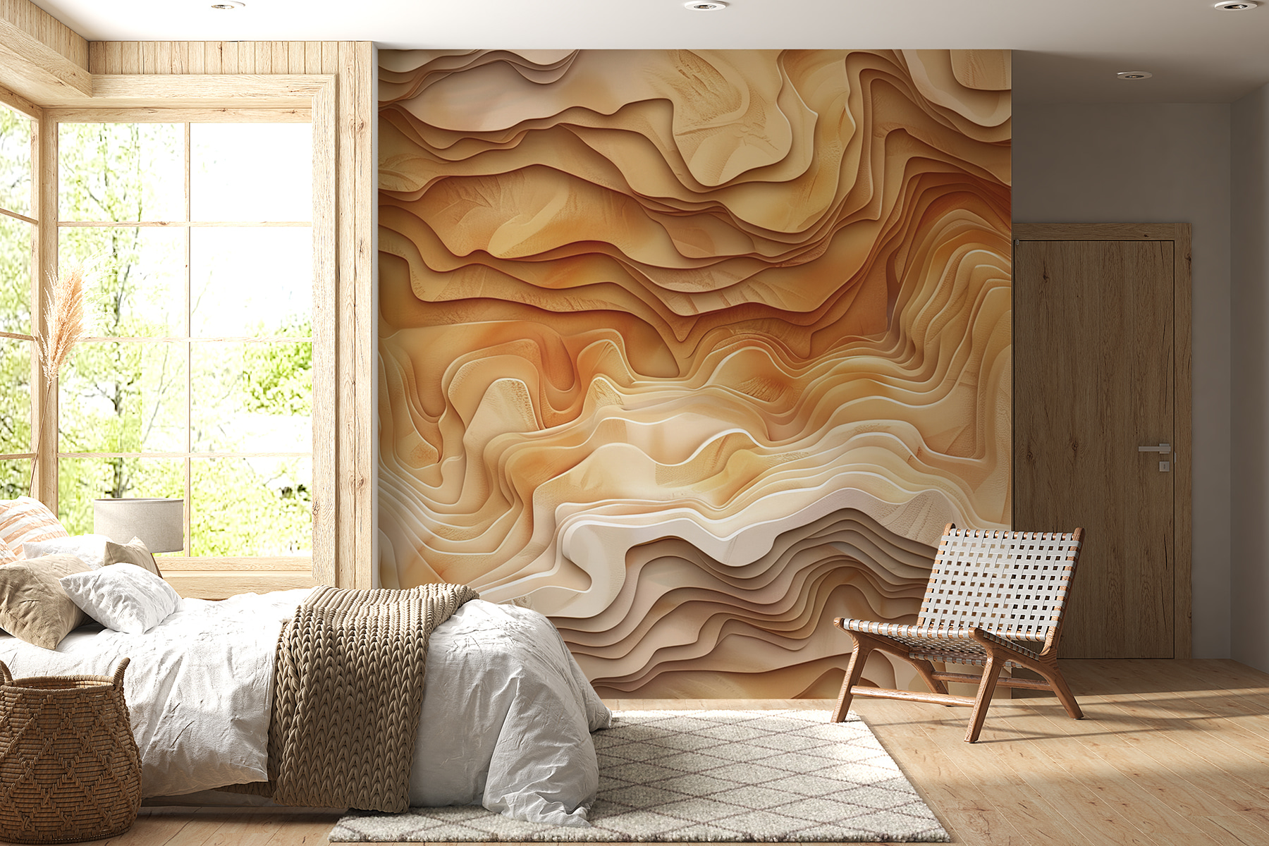 Trasformate le vostre pareti con la bellezza degli strati della Terra, catturata in questo murale con onde astratte dai toni caldi e terrosi. Immaginate di entrare in un ambiente sereno, naturale e invitante, perfetto per un accogliente angolo lettura o un vivace salotto. Questo disegno aggiunge profondità senza sopraffare i sensi. È come portare un pezzo di natura in casa. Gli amici lo ammireranno e forse vi chiederanno se siete diventati segretamente interior designer. Perché non lasciare che il vostro spazio racconti una storia? È ora di dire addio alle pareti noiose e di dare il benvenuto a un’atmosfera che sembra fatta apposta per voi.