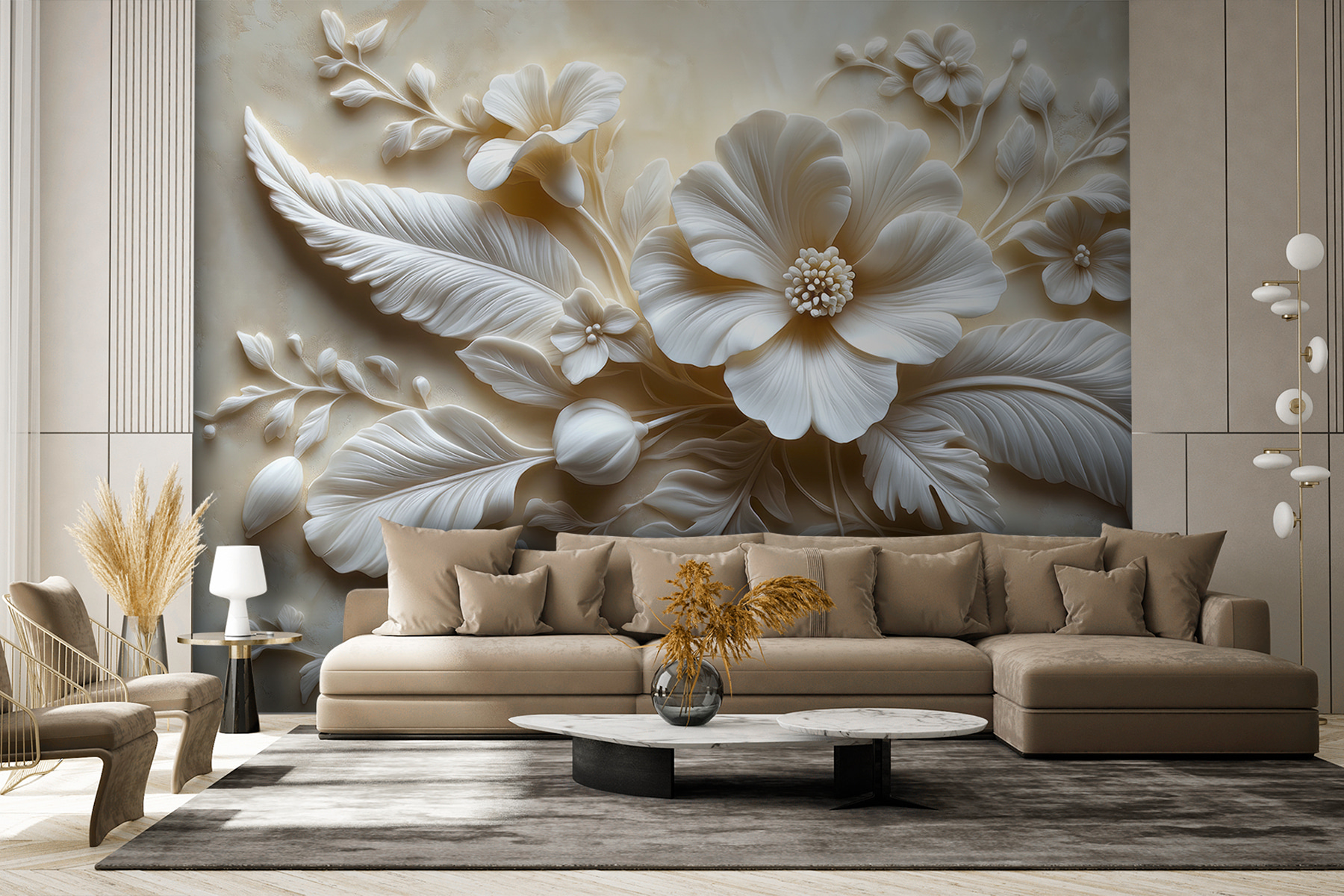 Trasformate qualsiasi stanza in una fuga serena con questo splendido murale caratterizzato da delicati fiori bianchi e foglie rigogliose. Immaginate di entrare nel vostro spazio e di sentirvi immediatamente sollevati dalla morbida eleganza che vi circonda. È come portare un giardino in casa, senza l’annaffiatoio! L’intricato disegno attira gli sguardi e stimola la conversazione, rendendolo perfetto per un angolo accogliente o un soggiorno vivace. Gli amici si fermeranno probabilmente sulle loro tracce, chiedendosi dove abbiate trovato un tale gioiello. Abbracciate la presenza calmante della natura proprio a casa vostra. Chi avrebbe mai immaginato che le pareti potessero essere così calde?