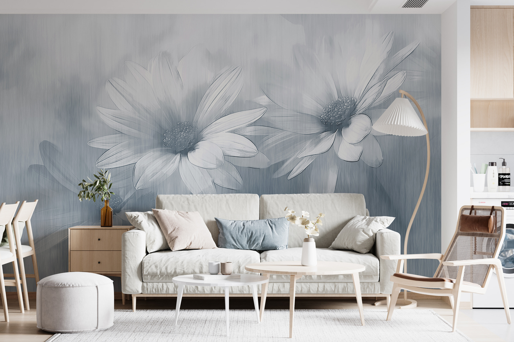 Trasformate ogni spazio con una ventata di aria fresca grazie a questo delizioso murale con un gruppo di fiori bianchi. Immaginate di entrare in una stanza che sembra un giardino segreto, dove i fiori sembrano ondeggiare dolcemente, sussurrando storie di primavera. Questo murales aggiunge un tocco di eleganza senza nemmeno sforzarsi, perfetto per ravvivare un angolo accogliente o per trasformare una parete insipida in un rifugio da sogno. Immaginate di accoccolarvi con un libro vicino, con i fiori proiettati in una luce soffusa che crea un’atmosfera di pace. È come avere la natura in casa, senza il polline!