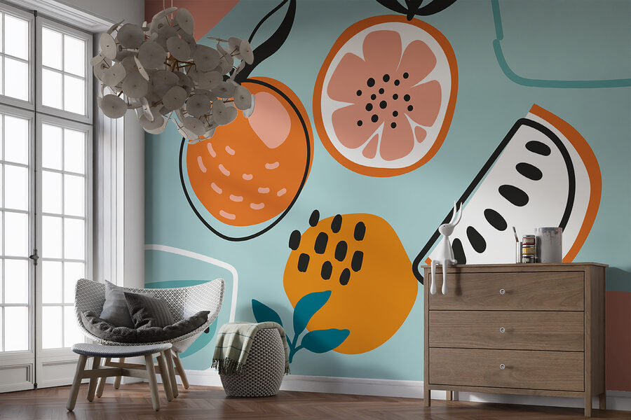 Avete mai desiderato che le vostre pareti facciano una dichiarazione senza dire una parola? Ecco il murale W01421! Questo delizioso murale dona un tocco giocoso a qualsiasi spazio, come una simpatica spruzzata di colore direttamente dal quaderno degli schizzi di un artista. Con fette di arance succose, forme eccentriche e un’esplosione di vibrazioni della natura, è come una jam session artistica spontanea che è atterrata perfettamente sulla vostra parete.
