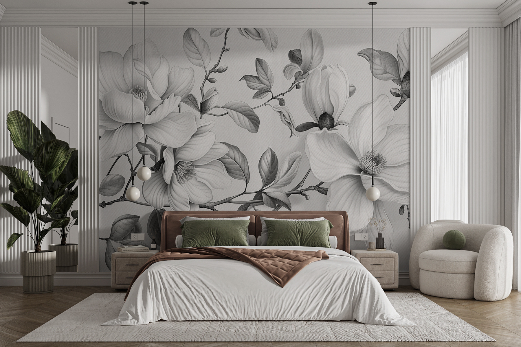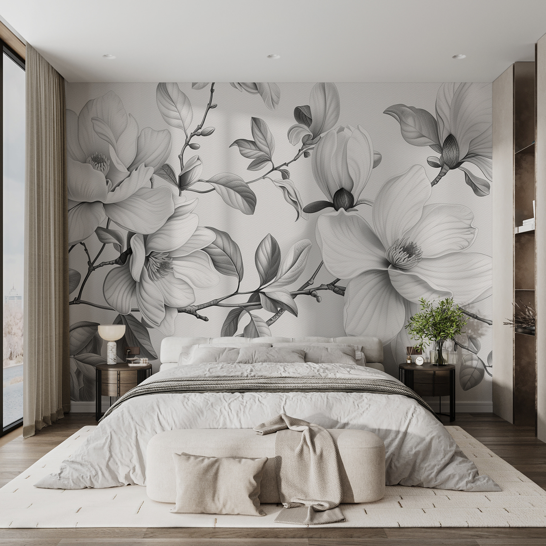 Trasformate una parete spenta in un’opera d’arte con questo elegante murale floreale monocromatico. Immaginate di entrare in un giardino sereno, dove ogni petalo sussurra dolcemente eleganza e fascino. L’intricato disegno conferisce un’atmosfera rilassante, perfetta per qualsiasi spazio che necessiti di un tocco di natura. Immaginate gli amici che si riuniscono, ammirano questo splendido sfondo e magari si rovesciano un drink per l’emozione… Ops! Ma non preoccupatevi, l’importante è l’esperienza, giusto? Questo murale cattura l’essenza della tranquillità e si integra senza sforzo con qualsiasi stile di arredamento. Portate a casa una boccata d’aria fresca!