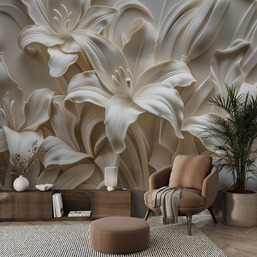 Immaginate di entrare in una stanza e di essere accolti da un’esplosione di eleganti gigli color crema che sembrano emergere delicatamente dalla parete: un fattore di grande effetto! “Carta da parati w01433” dona un tocco di raffinatezza chic con il suo design floreale in 3D. Non si tratta di un’altra stampa murale, ma di un’opera che aggiunge consistenza, profondità e un’atmosfera serena a qualsiasi spazio. Perfetto per chi è stanco di pareti piatte e noiose e desidera un tocco in più.
