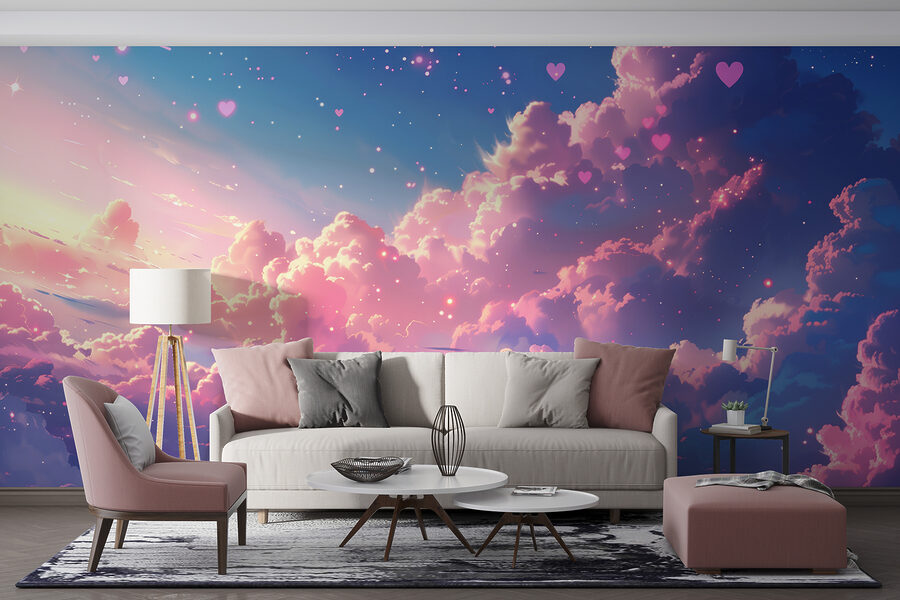 Immaginate di alzare lo sguardo e di vedere un cielo pieno di nuvole sognanti e colorate di rosa che sembrano uscite da una fiaba: questo murale, “Carta da parati w01487”, è quella scena magica catturata per la vostra parete. È come portare a casa vostra un pezzo di paradiso dello zucchero filato. Perfetto per chi ama un tocco di estrosità e di serenità diurna. I blu e i rosa tenui si fondono insieme, rendendo ogni stanza accogliente e allo stesso tempo rinfrescante. I bambini adoreranno i tocchi a forma di cuore e potrebbe essere l’argomento di conversazione della vostra prossima riunione. Non è solo un murale: è un piccolo pezzo di felicità proprio sulla vostra parete.