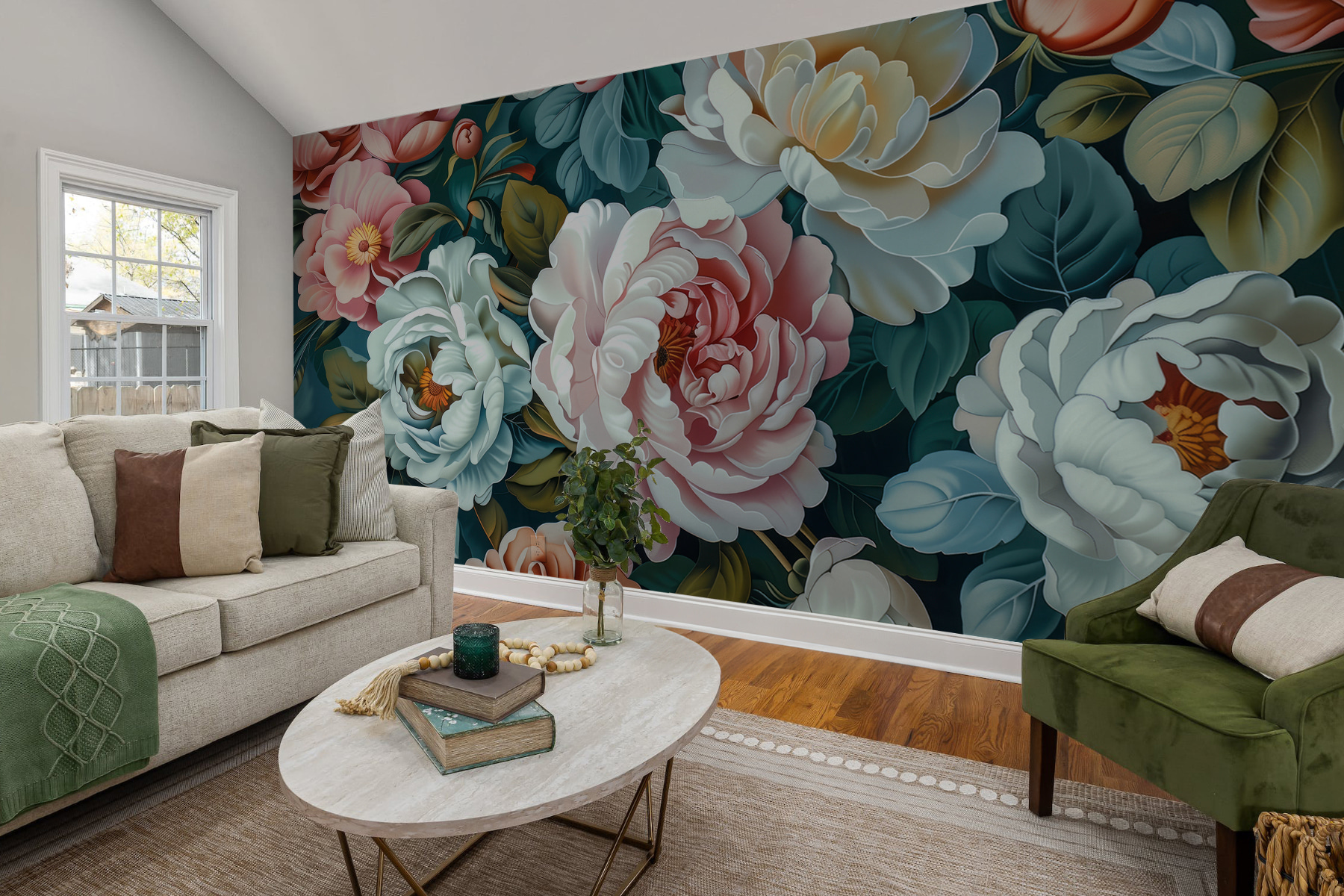 Un murale di questo tipo trasforma qualsiasi spazio. Potrebbe essere la vostra fuga personale, trasformando una stanza noiosa in un giardino vivace. Immaginatevi un caffè mattutino con questi fiori come sfondo: è sufficiente per rallegrare qualsiasi giornata. La miscela di colori profondi e ricchi e i dettagli intricati lo rendono unico.