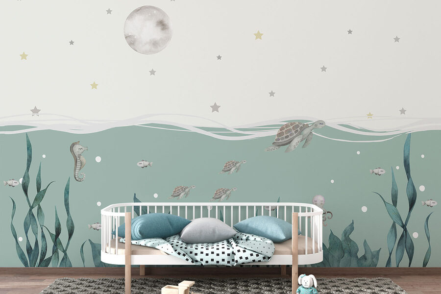 Immaginate di immergervi in un sereno mondo sottomarino ogni volta che entrate nella stanza. Questo murale “Seaweed & Seahorses” cattura la dolce danza delle creature marine sotto un cielo notturno stellato. È come se le vostre pareti avessero fatto un delizioso tuffo nell’oceano. Perfetto per qualsiasi spazio che abbia bisogno di un tocco di estro o di un’atmosfera rilassante. E poi, chi non vorrebbe guardare delle piccole tartarughe scivolare mentre sorseggia il caffè del mattino? Aggiungete un tocco di mare al vostro arredamento e lasciate libera la vostra immaginazione!