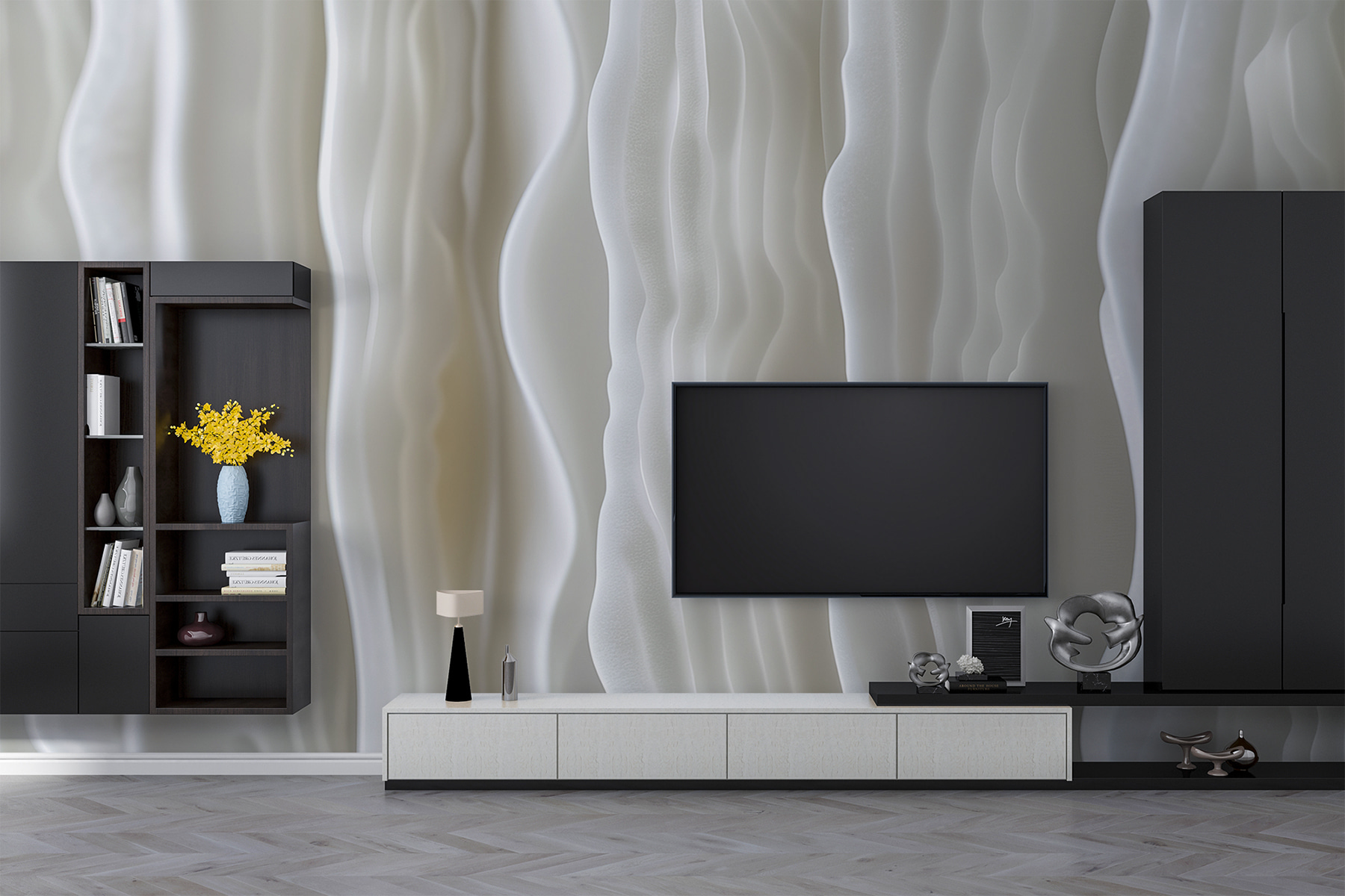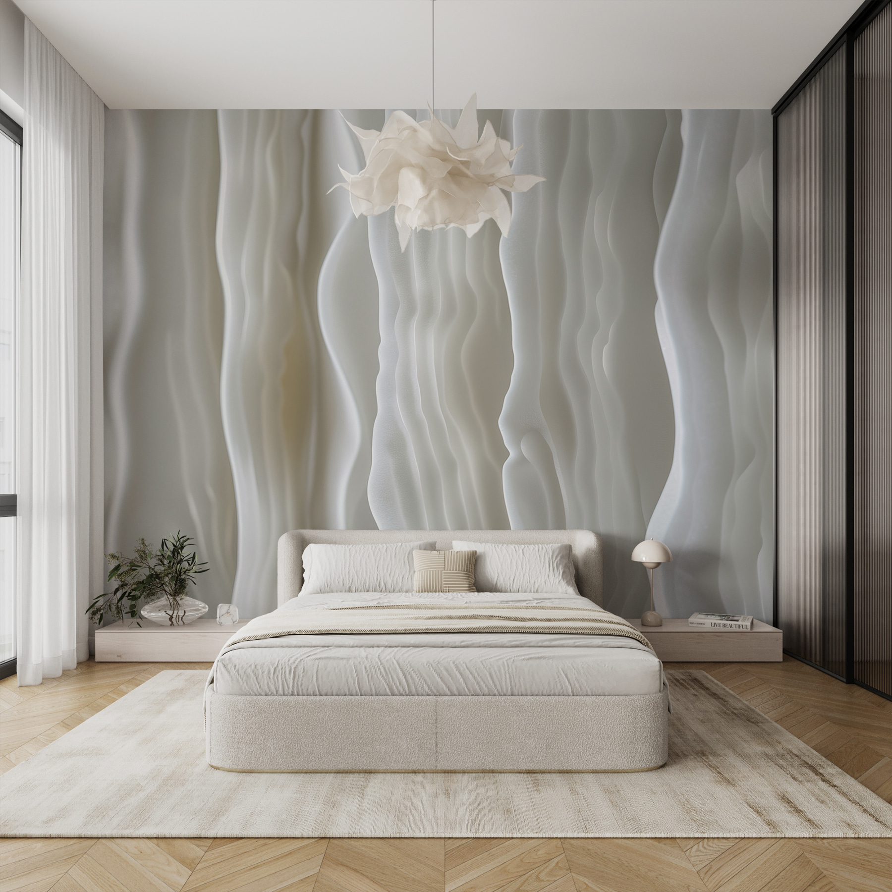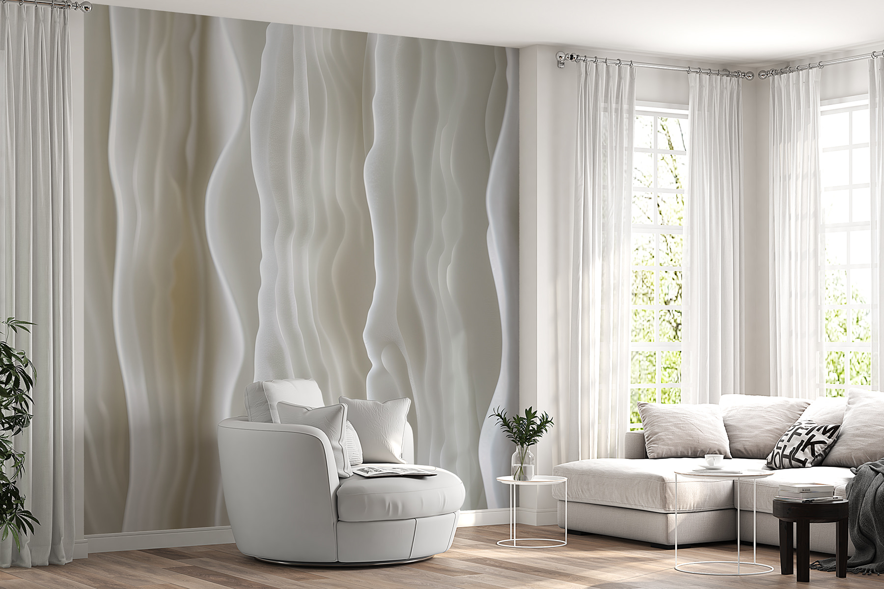 Immaginate di entrare in una stanza dove le pareti sembrano incresparsi come una dolce brezza su un mare calmo. Ecco il murale “Undulating White”: un’incredibile danza di morbide onde astratte che trasforma qualsiasi spazio in un’oasi moderna. Quelle linee fluide! Aggiungono profondità e una tranquillità quasi magica. Perfetto per un angolino accogliente o per il nuovo ufficio, questo murale sussurra raffinatezza con un tocco di estrosità. È come avere una mini galleria d’arte proprio a casa. Gli amici potrebbero persino chiedere: “Hai ristrutturato?”. Basta sorridere e lasciare che siano le onde a parlare.
