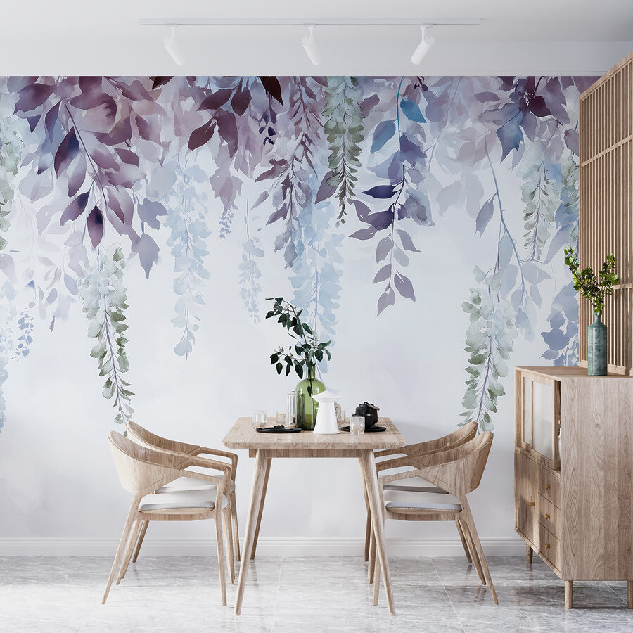Carta da parati Carta da parati Pittura di foglie e fiori (SKU: w01545v1)