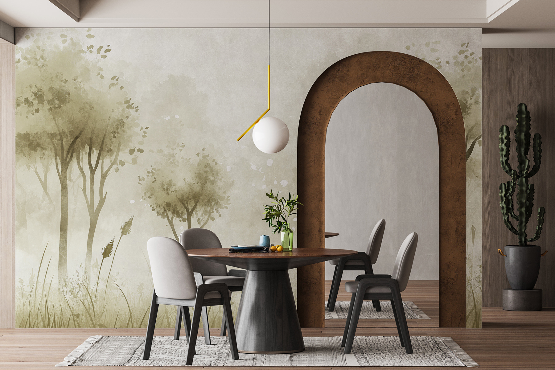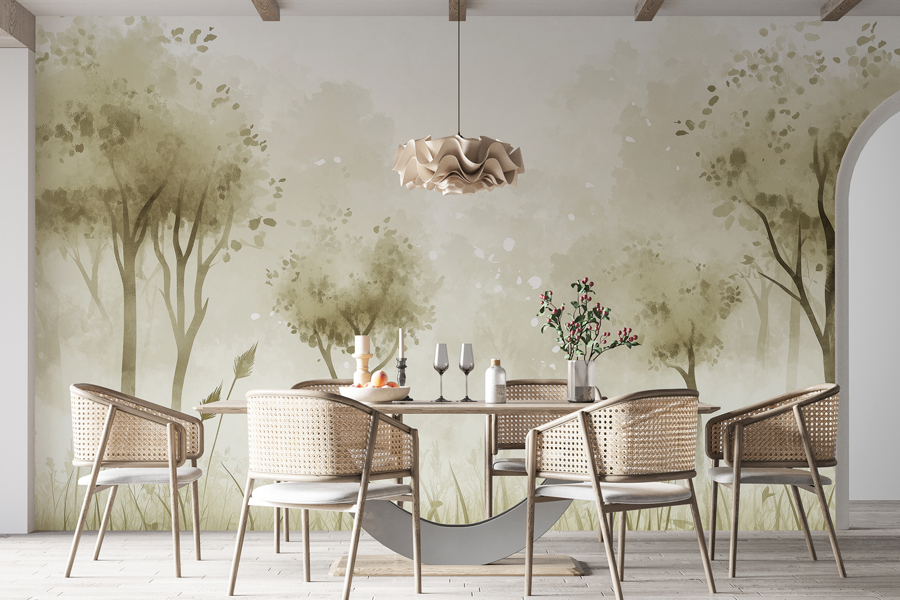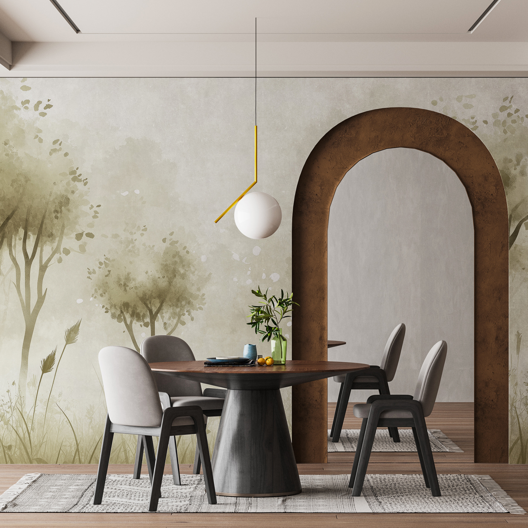 Guardate esattamente come apparirà il vostro spazio con la nuova carta da parati prima di acquistarla. Visualizzazione professionale da parte di designer esperti senza alcun costo o obbligo di acquisto.
