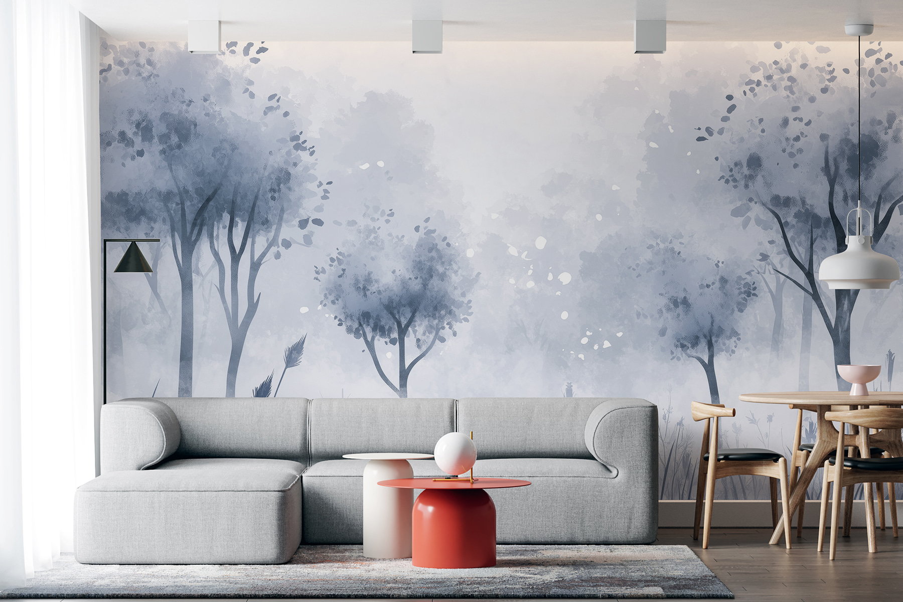 Guardate esattamente come apparirà il vostro spazio con la nuova carta da parati prima di acquistarla. Visualizzazione professionale da parte di designer esperti senza alcun costo o obbligo di acquisto.