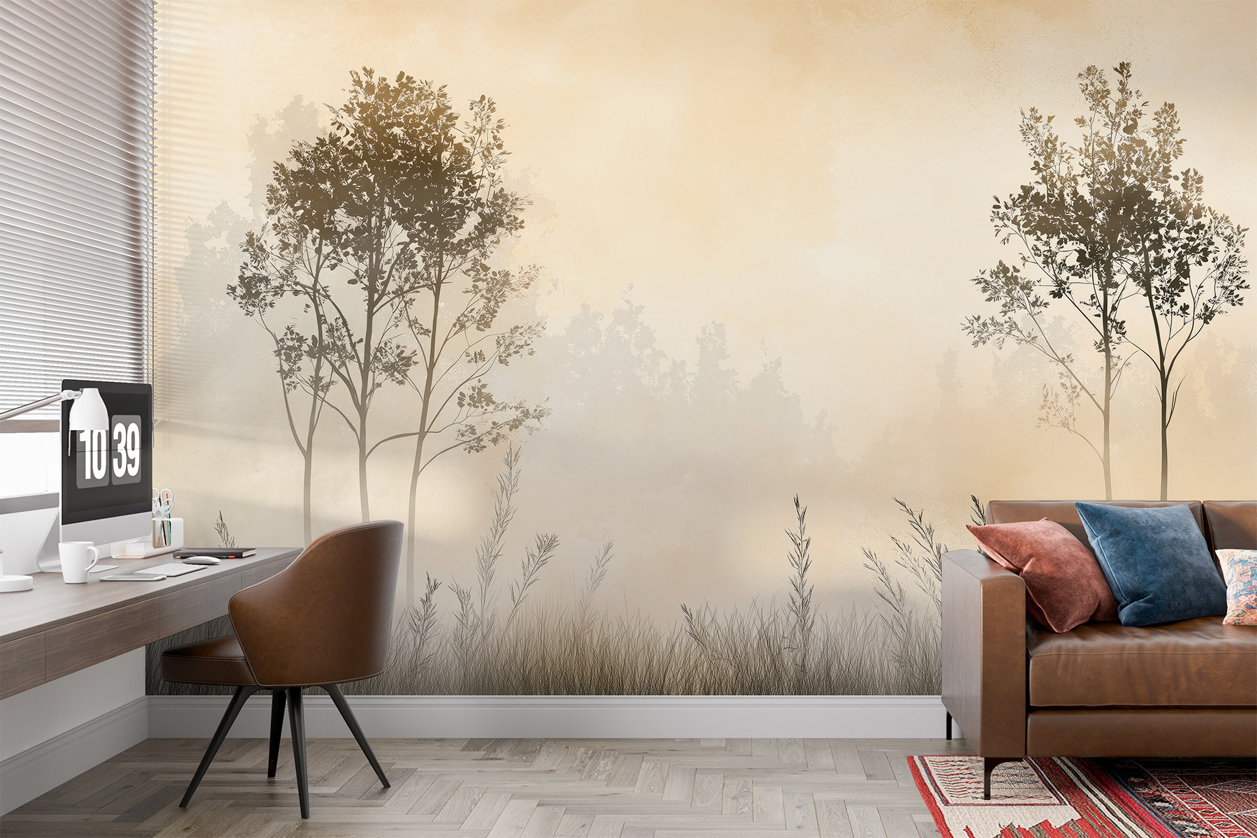 Immaginate di svegliarvi con questo murale da sogno: “Paesaggio nebbioso con alberi ed erba”. È come entrare in una foresta serena direttamente dal vostro salotto. Avete presente l’atmosfera rilassante di una mattina tranquilla? Questo quadro la cattura perfettamente. La nebbia soffice avvolge alberi aggraziati, con accenni di erba che fanno capolino. Perfetto per trasformare una parete semplice nel vostro rifugio di pace.