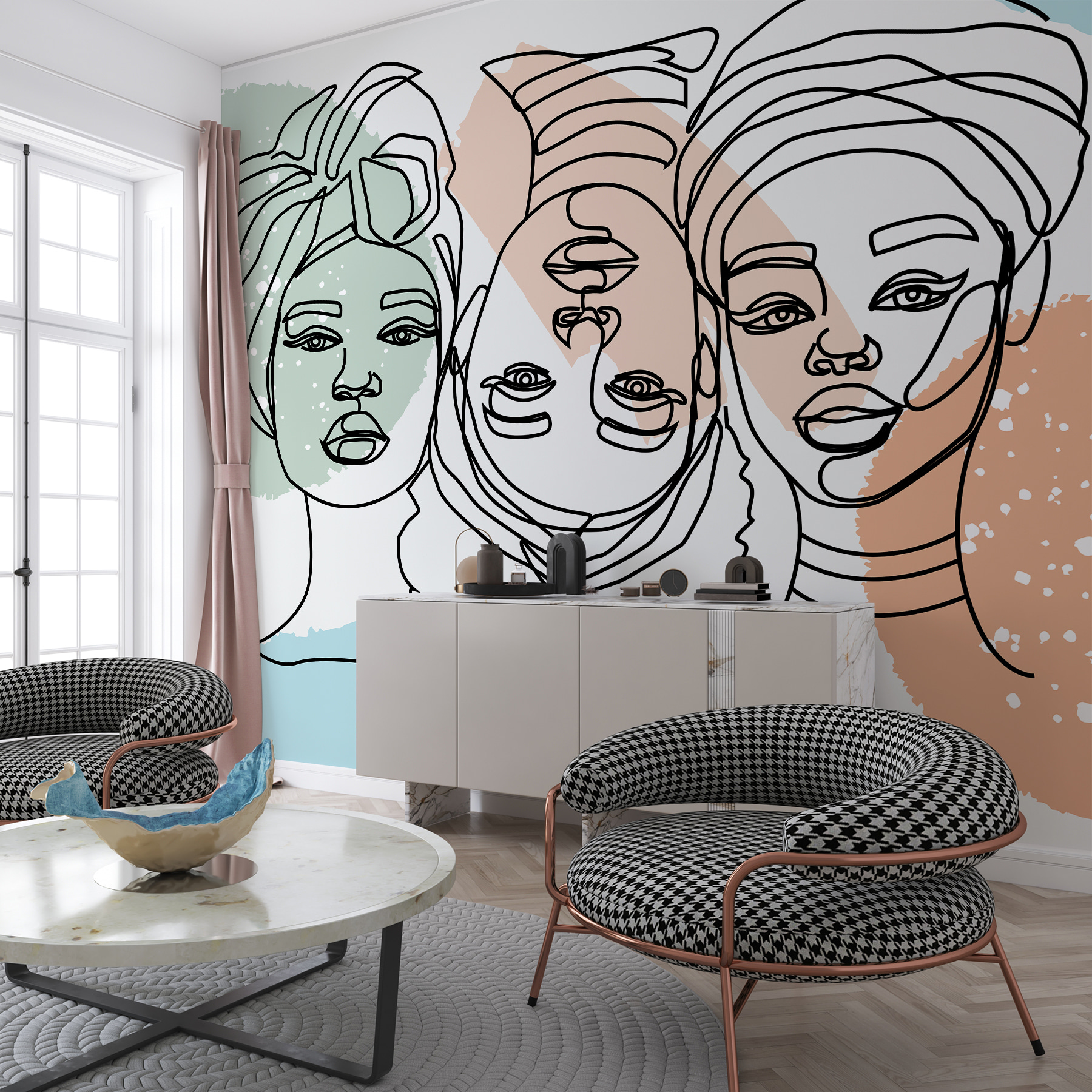 L’opera “Carta da parati Group of Women’s Faces” è come una vibrante conversazione sulla vostra parete. Immaginate di svegliarvi con lo sguardo artistico di questi volti, come se stessero condividendo segreti o scambiando storie. I tenui colori pastello invitano alla calma, mentre le linee astratte mantengono l’interesse. Che stiate sorseggiando il vostro caffè mattutino o vi stiate rilassando dopo una lunga giornata, questi murales conferiscono un tocco di estrosità e arguzia. È come ricevere un caldo abbraccio dall’arredamento ogni volta che ci si passa accanto. Perfetto per tutti coloro che amano le pareti come i loro amici!
