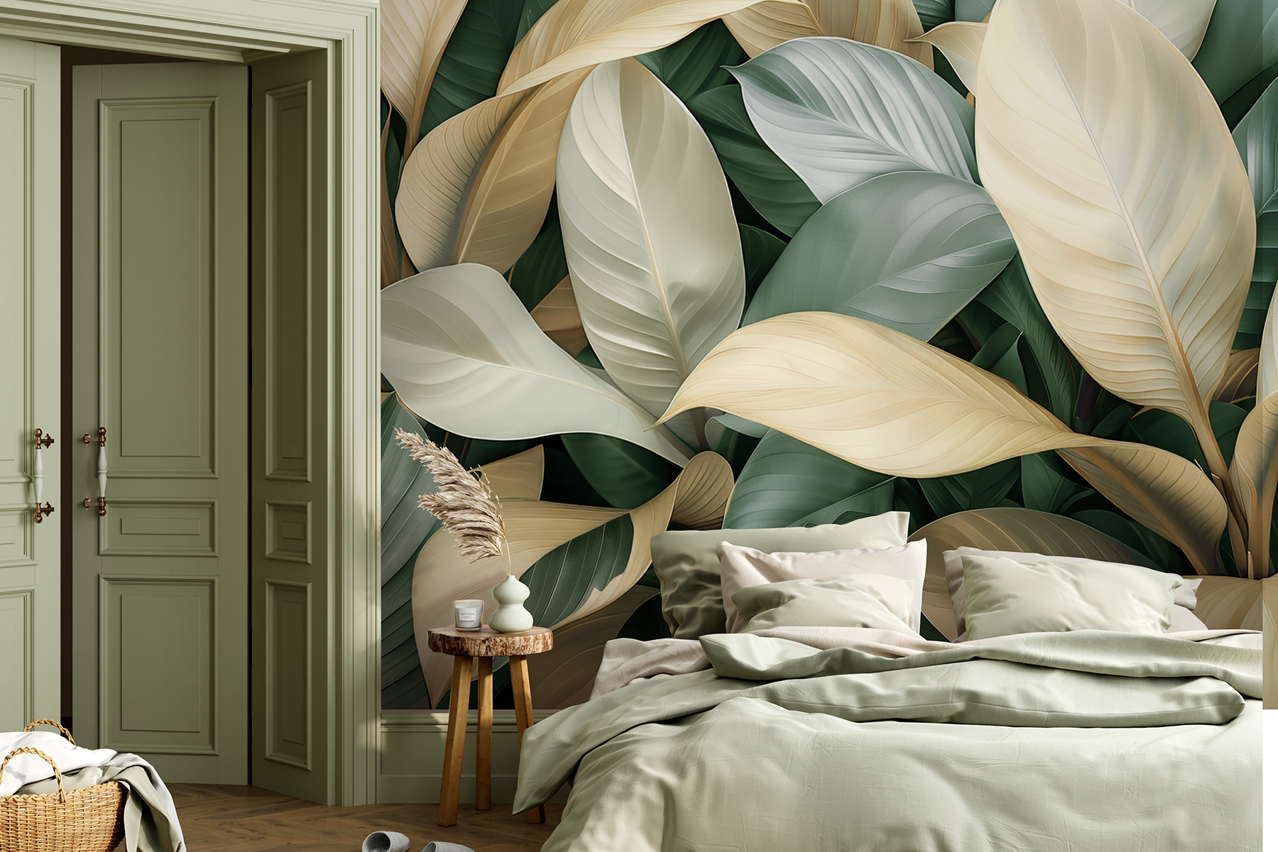 Immaginate questa bellezza sulla vostra parete: “Lush Leaves in Soft Hues” è come una dolce brezza in forma di opera d’arte. Non è solo un murale: è una mini-vacanza per i vostri occhi. Perfetto per portare un po’ di aria aperta all’interno, senza il polline. I verdi tenui e i crema danzano insieme come se fossero migliori amici da sempre. Immaginate di tornare a casa dopo una lunga giornata, di sdraiarvi sulla vostra poltrona preferita e di perdervi in queste foglie rilassanti. Questo non è solo arredamento, amico mio. È una dose quotidiana di tranquillità.