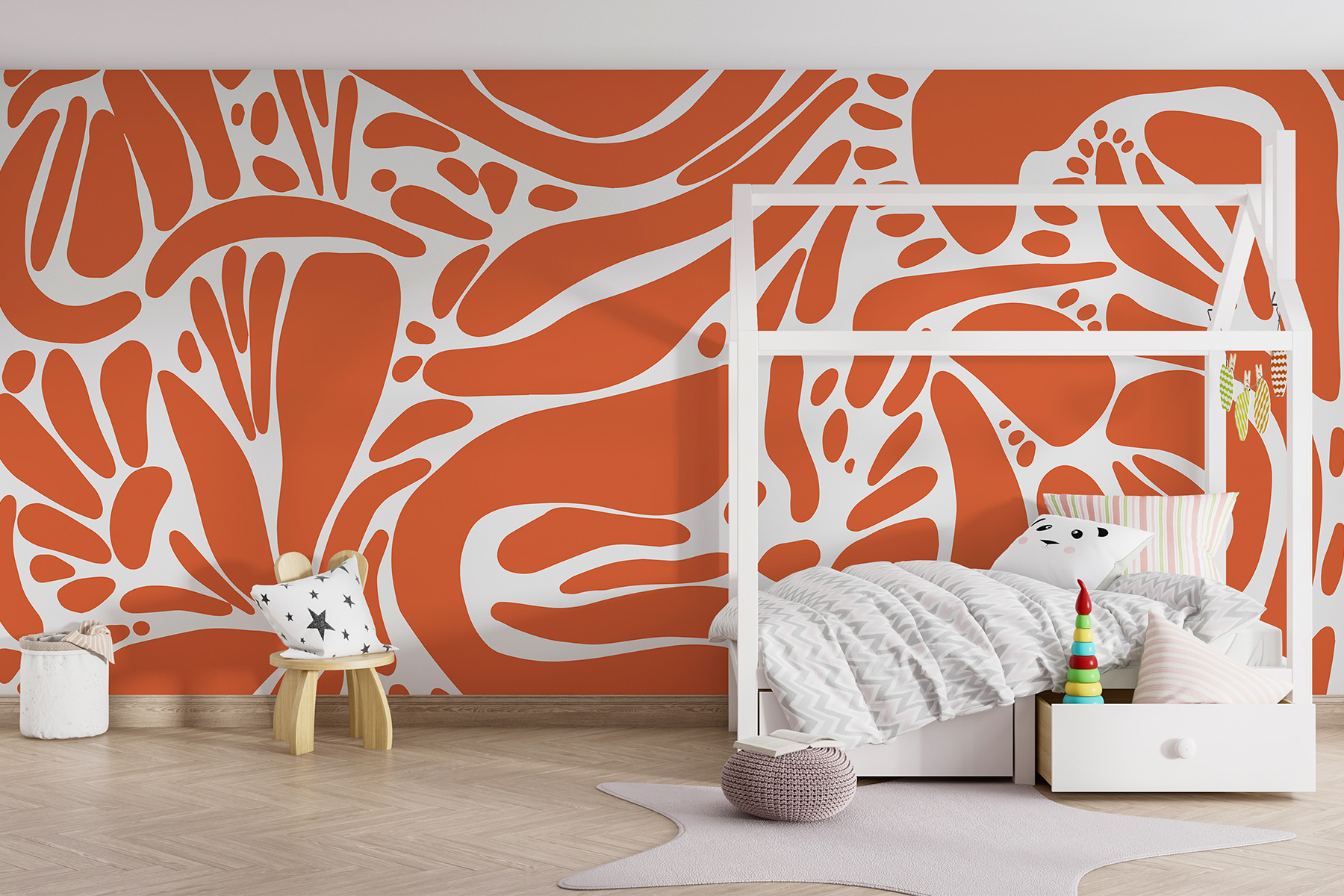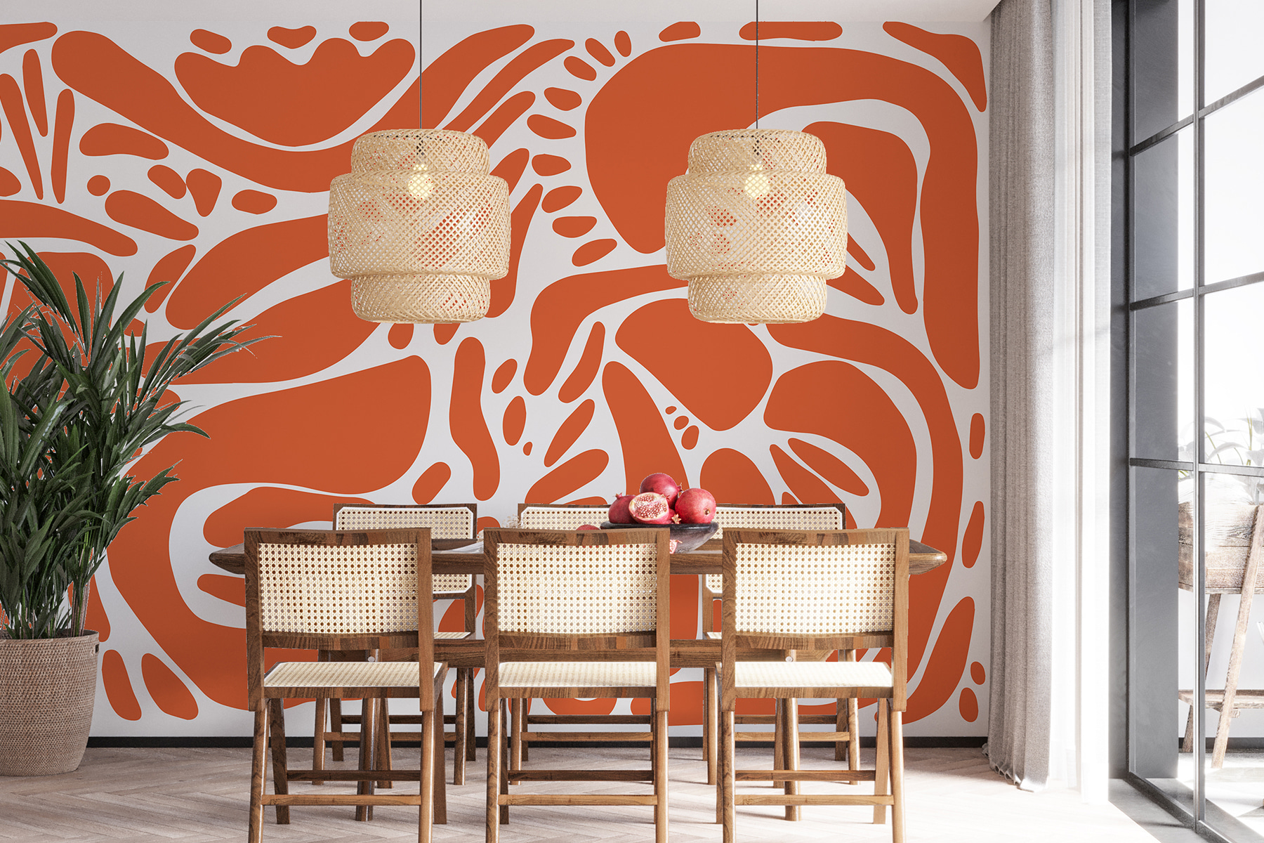 Guardate esattamente come apparirà il vostro spazio con la nuova carta da parati prima di acquistarla. Visualizzazione professionale da parte di designer esperti senza alcun costo o obbligo di acquisto.
