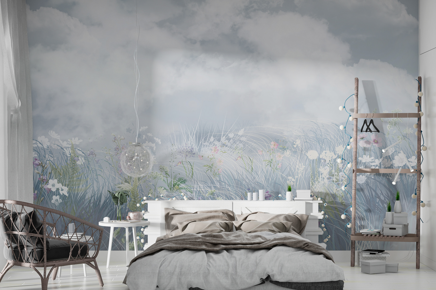 Immaginate di svegliarvi ogni giorno in un campo di fiori, senza mai lasciare il vostro accogliente letto. Questo murale ha nuvole così soffici che praticamente si staccano dal muro e fiori di campo che sembrano sbocciare davanti ai vostri occhi. È come un sogno acquerellato sulla parete. Perfetto per coloro che desiderano sonnecchiare in un prato (senza le formiche). Ha questo modo magico di aprire una stanza, rendendola calma e ventilata. Una fuga perfetta. Con il tè in mano, potreste dimenticarvi di essere a casa. Beato, non è vero?