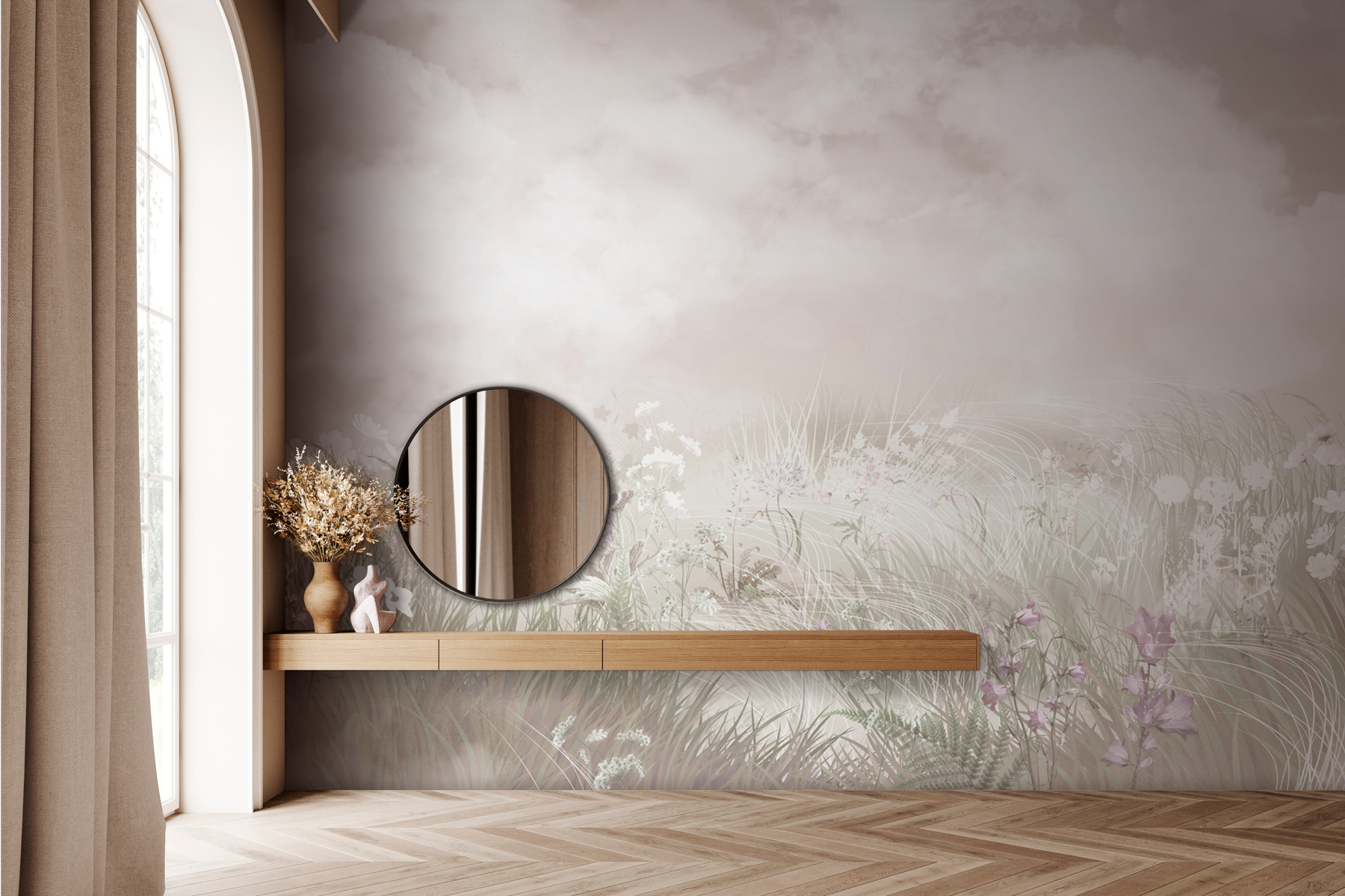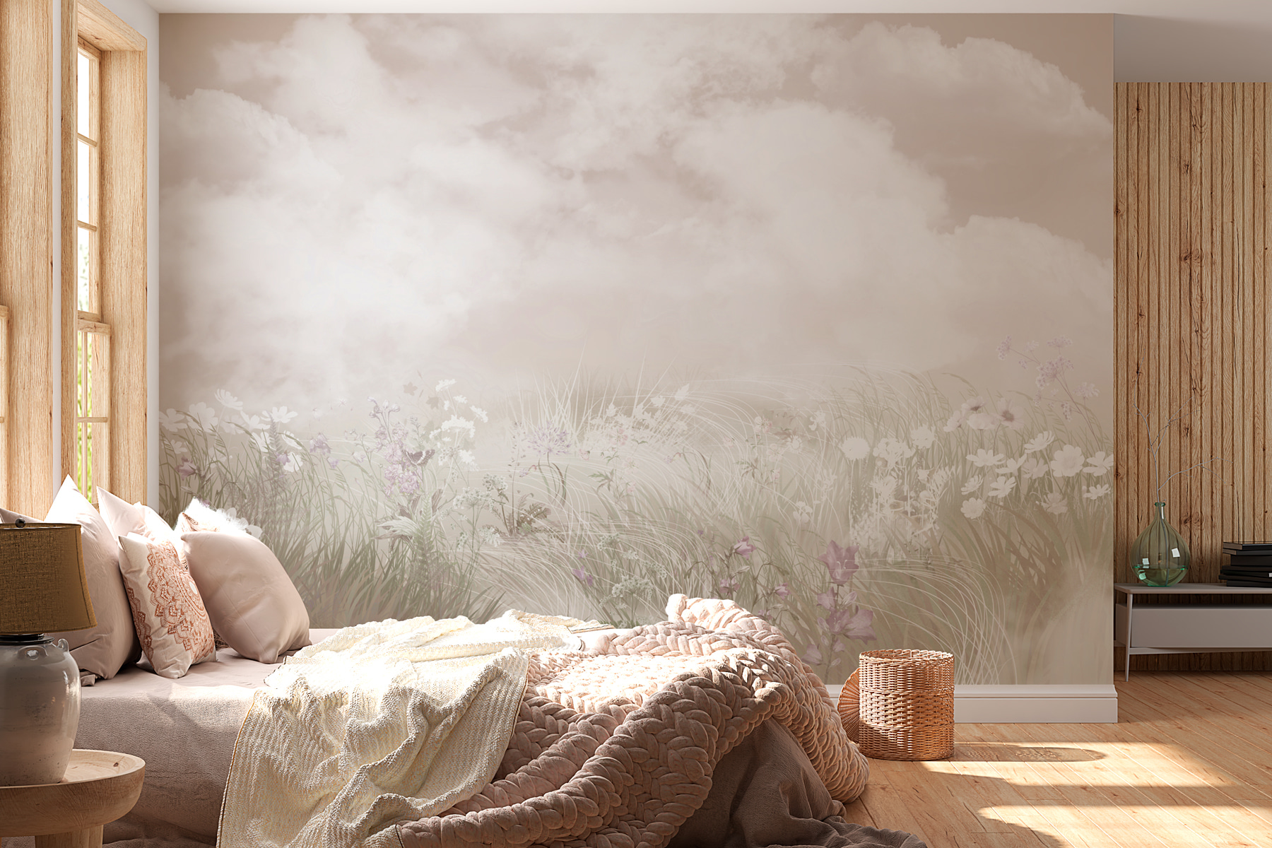 Immaginate questo: un pomeriggio pigro in cui le preoccupazioni della giornata si dissolvono. Questo è il senso di “Campo d’erba e fiori”. Questo murale porta la calma della natura direttamente nel vostro spazio. Le nuvole soffici e i fiori delicati creano un’evasione da sogno, perfetta per quei momenti in cui si ha bisogno di una fuga mentale. È come avere un prato segreto in casa. Inoltre, si abbina magnificamente alla luce del giorno che entra, facendo sentire viva qualsiasi stanza. Ideale per gli amanti della natura che vogliono un po’ di mondo esterno all’interno.