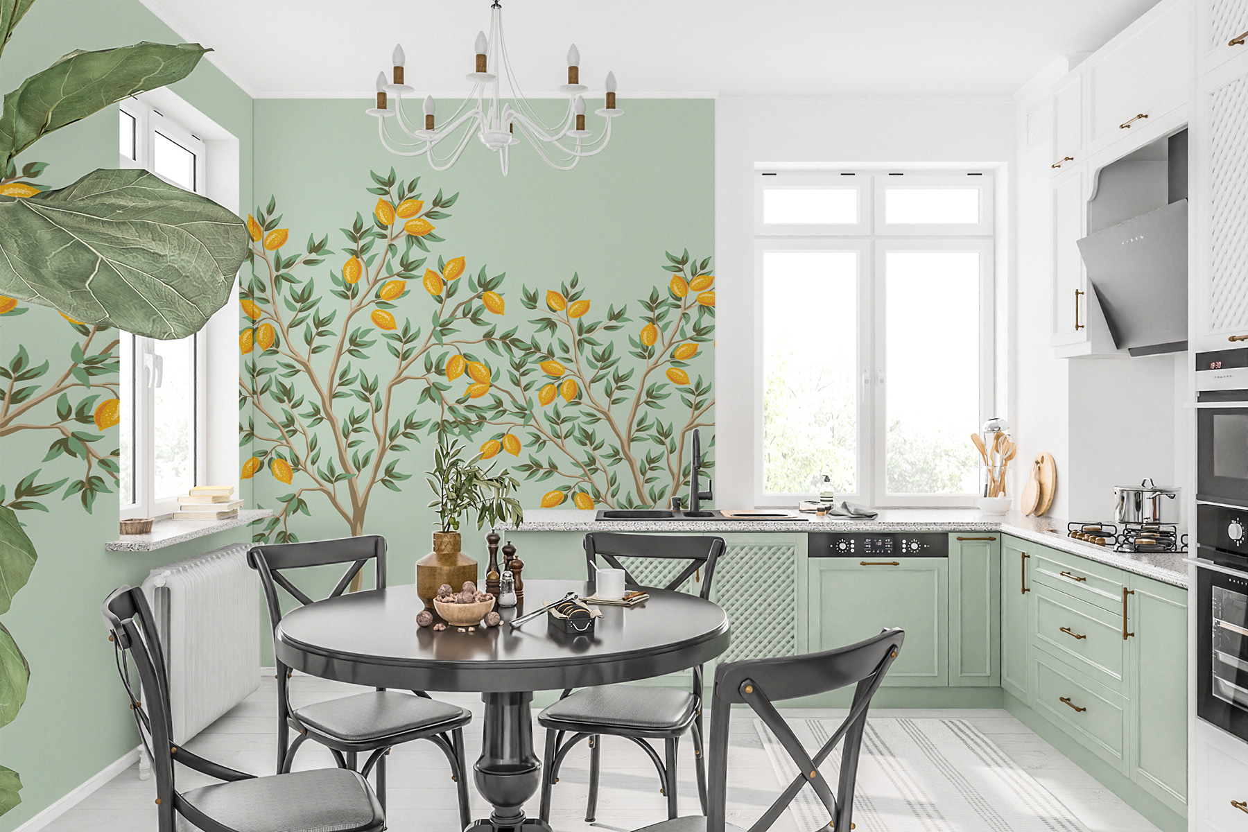 Ravvivate qualsiasi spazio con questo affascinante murale che raffigura un albero vivace e ricco di frutti gialli. Immaginate di entrare in una stanza e di percepire l’atmosfera fresca e solare che vi regala, come se foste entrati in una piccola fetta di natura senza mai uscire di casa. I colori vivaci catturano l’attenzione e lo rendono perfetto per la cucina, la sala da pranzo o anche per un angolo accogliente dove si conversa bene. Ispirerà sogni ad occhi aperti di picnic soleggiati e limonate nei pomeriggi caldi. Un modo divertente per aggiungere una nota di colore e un tocco di estrosità che fa stare bene. Lasciate che i frutti sollevino il vostro spirito!