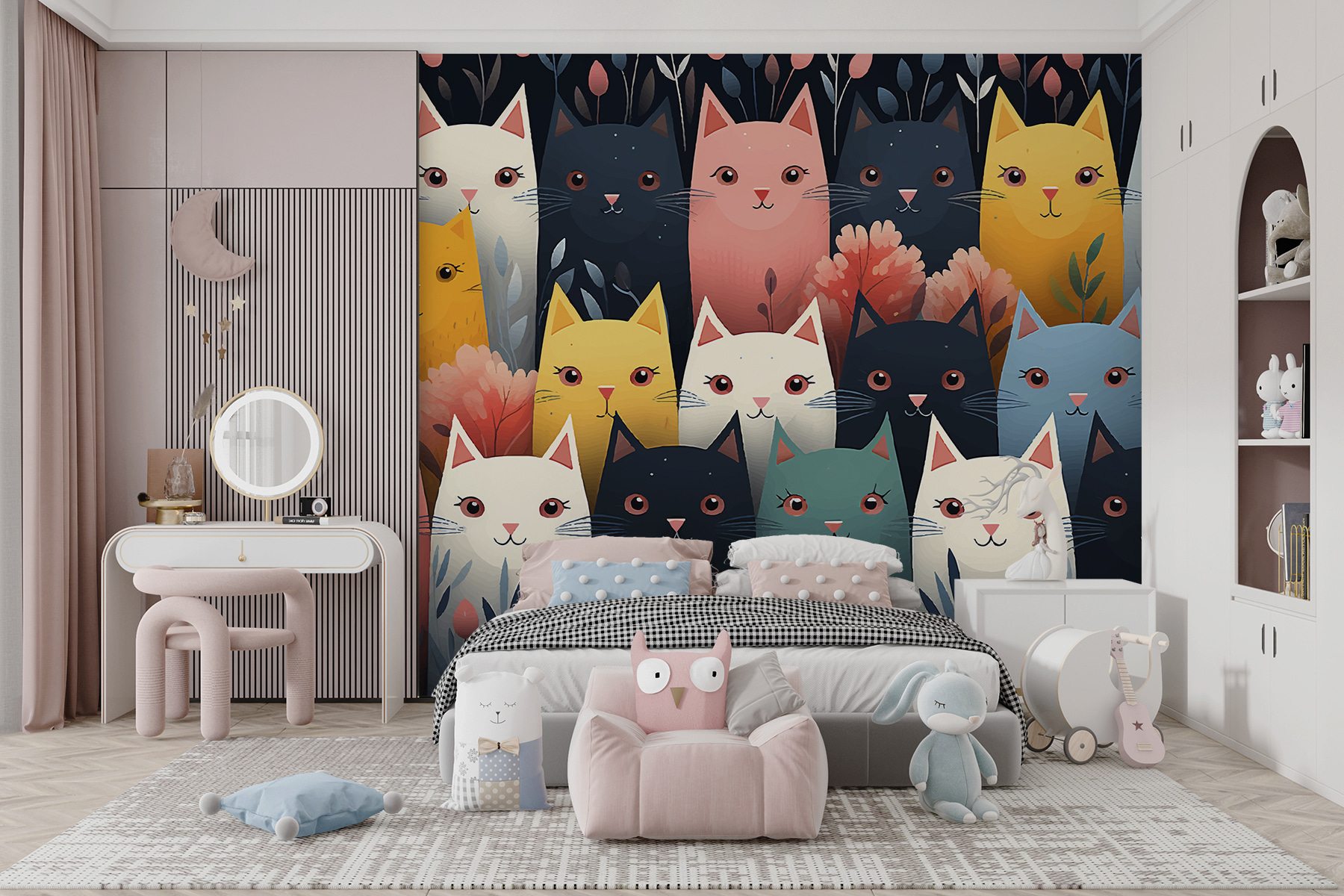 Volete aggiungere un po’ di estro al vostro spazio? Date un’occhiata a questo giocoso murale chiamato “Gruppo di gatti con fiori”. Immaginate un gruppo di gattini colorati – rosa, verdi e gialli – che si muovono tra fiori allegri. È come una festa in giardino, ma con i gatti! Perfetto per chiunque ami un tocco di colore e un pizzico di allegria. Questi amici felini portano fascino e un pizzico di malizia in ogni stanza, solleticando il vostro spirito creativo ogni volta che passate di lì. State pensando di creare un angolo accogliente? Questi gatti vi guardano le spalle, o almeno le vostre pareti!