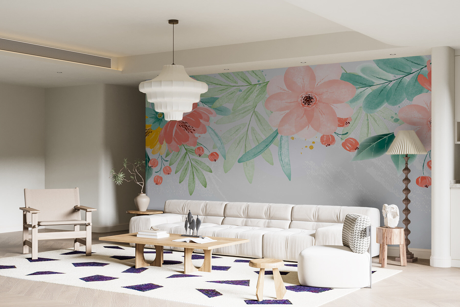Immaginate di entrare in una stanza dove la primavera è sbocciata proprio sulle pareti. Questo murale, dall’affascinante titolo “Blossoming Pastels Dance on Canvas”, fa proprio questo. È come una festa in giardino a base di acquerelli che si svolge nel vostro salotto. Morbidi petali dai colori sognanti ondeggiano dolcemente, aggiungendo un tocco di gioia alla vostra giornata. Perfetto per chi vuole che il proprio spazio sia come un dolce abbraccio. È un tocco di estrosità e un pizzico di delizia, ideale per chi ama le decorazioni uniche e allegre. Chi non vorrebbe dei fiori che non appassiscono mai?