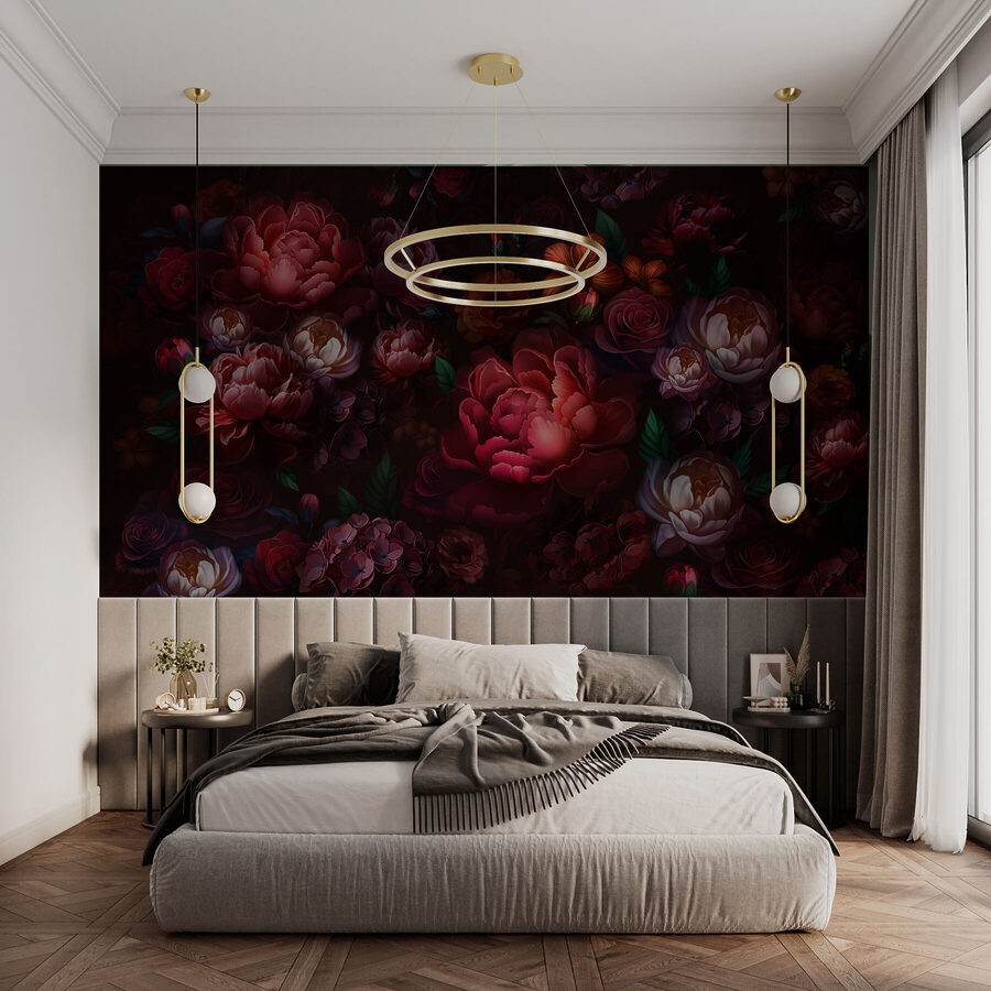 Entrate in un mondo in cui i fiori non svaniscono mai. Con questo murale di fiori lussureggianti su sfondo scuro sembra di entrare in un incantevole giardino serale. Immaginate i rossi ricchi e i bianchi tenui che danzano sulle vostre pareti, sussurrando eleganza e un tocco di mistero. Perfetto per trasformare una stanza semplice in un lussureggiante santuario. È come avere un paese delle meraviglie floreale personale, senza bisogno di pollice verde o di annaffiature frequenti! Ottimo per aggiungere intimità e fascino, è chic e senza tempo. Gli amici potrebbero perdersi a guardarlo, riflettendo su pensieri profondi o su cosa c’è per cena.