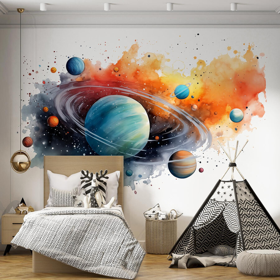 Avete mai sognato di avere l’universo proprio nel vostro salotto? Questo murale “Acquerello di pianeti e stelle” fa sembrare che ogni pianeta sia a un passo da voi. Perfetto per gli appassionati di spazio o per chiunque abbia mai guardato il cielo notturno chiedendosi se gli alieni abbiano un caffè migliore. I morbidi acquerelli aggiungono un’atmosfera sognante, mentre le stelle scintillano con sfrontata gioia. Immaginate di accoccolarvi con un buon libro, sentendovi come se foste tra le galassie. Non è solo una parete, è un’avventura. Pronti a iniziare la vostra?