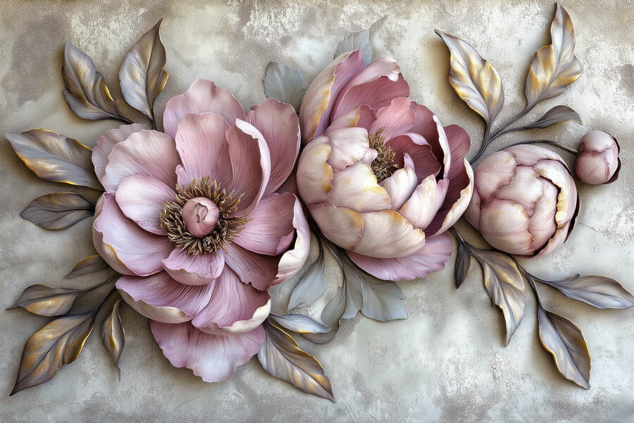 Trasformate qualsiasi ambiente con questo splendido murale, caratterizzato da un arazzo di fiori e foglie che praticamente saltano fuori dalla parete. Immaginate di entrare nel vostro spazio e di essere immediatamente circondati dal calore e dal fascino della natura. Le peonie sembrano pronte a sbocciare proprio nel vostro salotto! I tenui colori pastello creano uno sfondo incantevole, perfetto per serate accoglienti o giornate luminose e soleggiate. Inoltre, è un argomento di conversazione: chi non sarebbe curioso di vedere quelle splendide fioriture? Date alle vostre pareti una personalità che porti gioia e un tocco di eleganza. Perfetto per gli amanti dei fiori!