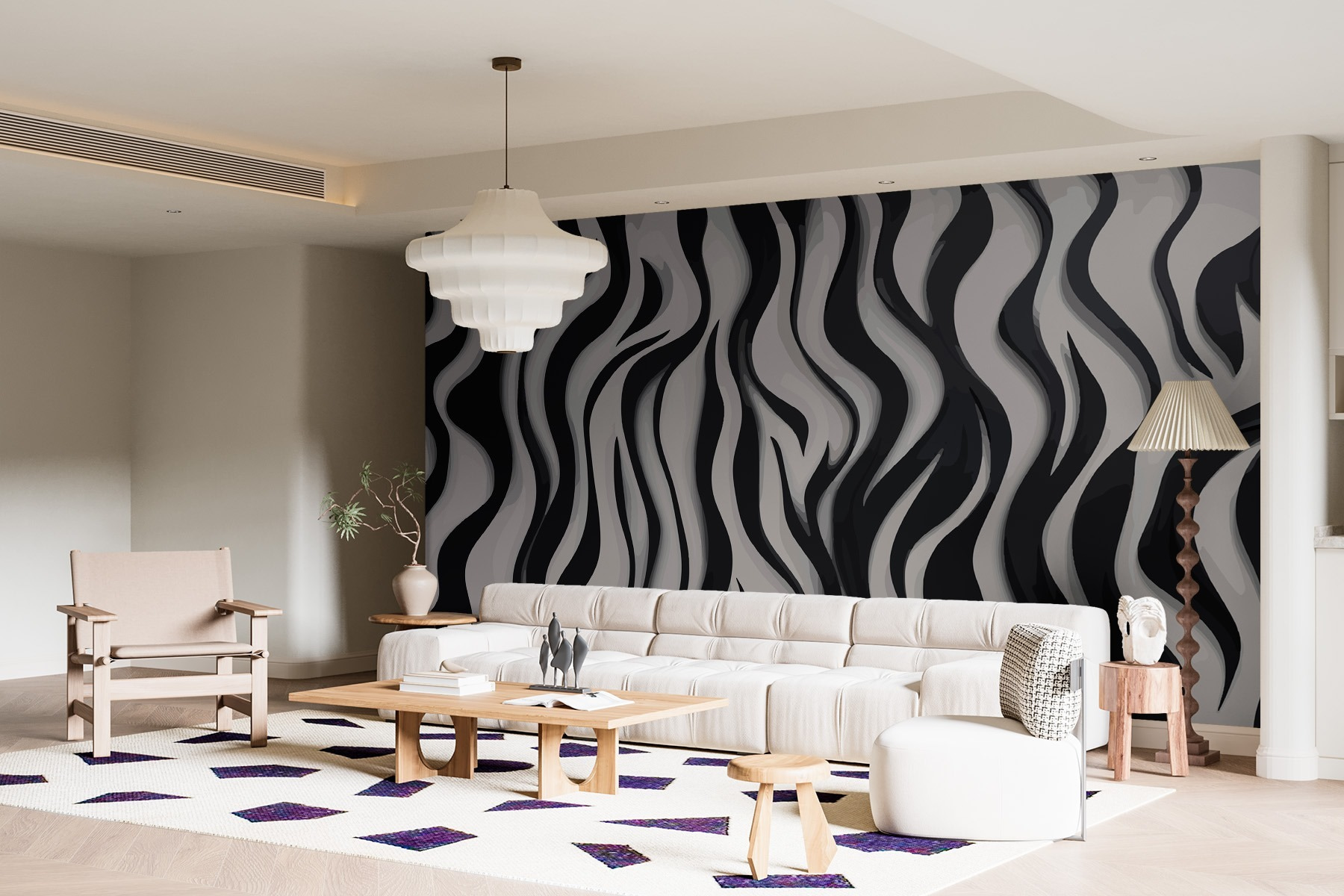 Vi è mai capitato di entrare in una stanza e sentirvi immediatamente più freschi? Ecco il murale “Black and White Striped Pattern”, un disegno che sembra danzare sulla parete. Perfetto per ravvivare uno spazio monotono, questo murale a strisce ondulate e decise è un tocco di classe al classico bianco e nero. Immaginate di sedervi con una tazza di tè e di sentirvi come in una galleria d’arte chic. Potrebbe far sentire sofisticato anche il vostro gatto. Un vero e proprio spunto di conversazione, ideale per tutti coloro che amano un po’ di drammaticità senza drammi.