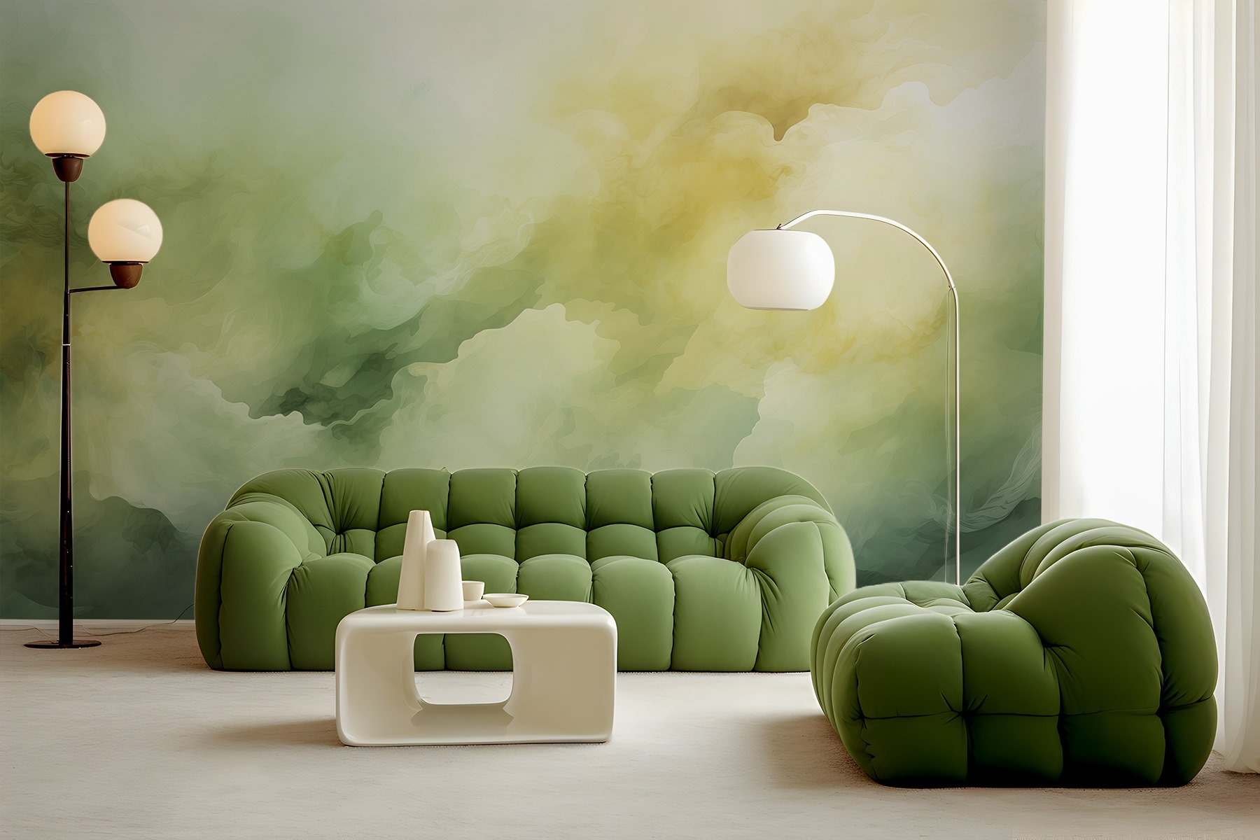 Immaginate di entrare in una stanza immersa in toni morbidi e nebbiosi che sembrano usciti da un bellissimo sogno ad occhi aperti. “Misty Hues in Dreamy Flow” fa proprio questo! È come entrare in un dolce turbinio di nuvole baciate dalla luce del giorno. Perfetto per chi ama un arredamento unico che sussurra serenità, ideale per un angolo lettura o per una camera da letto da sogno. I verdi e i gialli rilassanti sono come un caldo abbraccio in una mattina accogliente. Potreste perdervi nel suo incantesimo artistico, tazza di tè alla mano, chiedendovi dove sia andata la giornata!