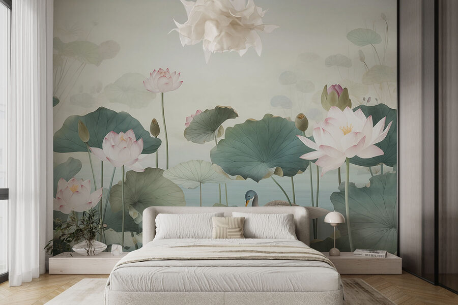 Trasformate qualsiasi spazio in un’oasi di tranquillità con questo incantevole murale raffigurante un’anatra che sguazza con grazia in un laghetto sereno ornato da splendidi fiori di loto. Il morbido effetto acquerello crea un’atmosfera da sogno, perfetta per un accogliente angolo lettura o per una tranquilla camera da letto. Immaginate di avvolgervi in questi colori rilassanti mentre sorseggiate un tè o sognate ad occhi aperti luoghi lontani. È come portare un sussurro di natura all’interno della casa, senza i fastidiosi insetti! Questo murale non è solo una decorazione, è un piccolo pezzo di tranquillità che evoca un morbido sospiro ogni volta che ci si passa accanto.